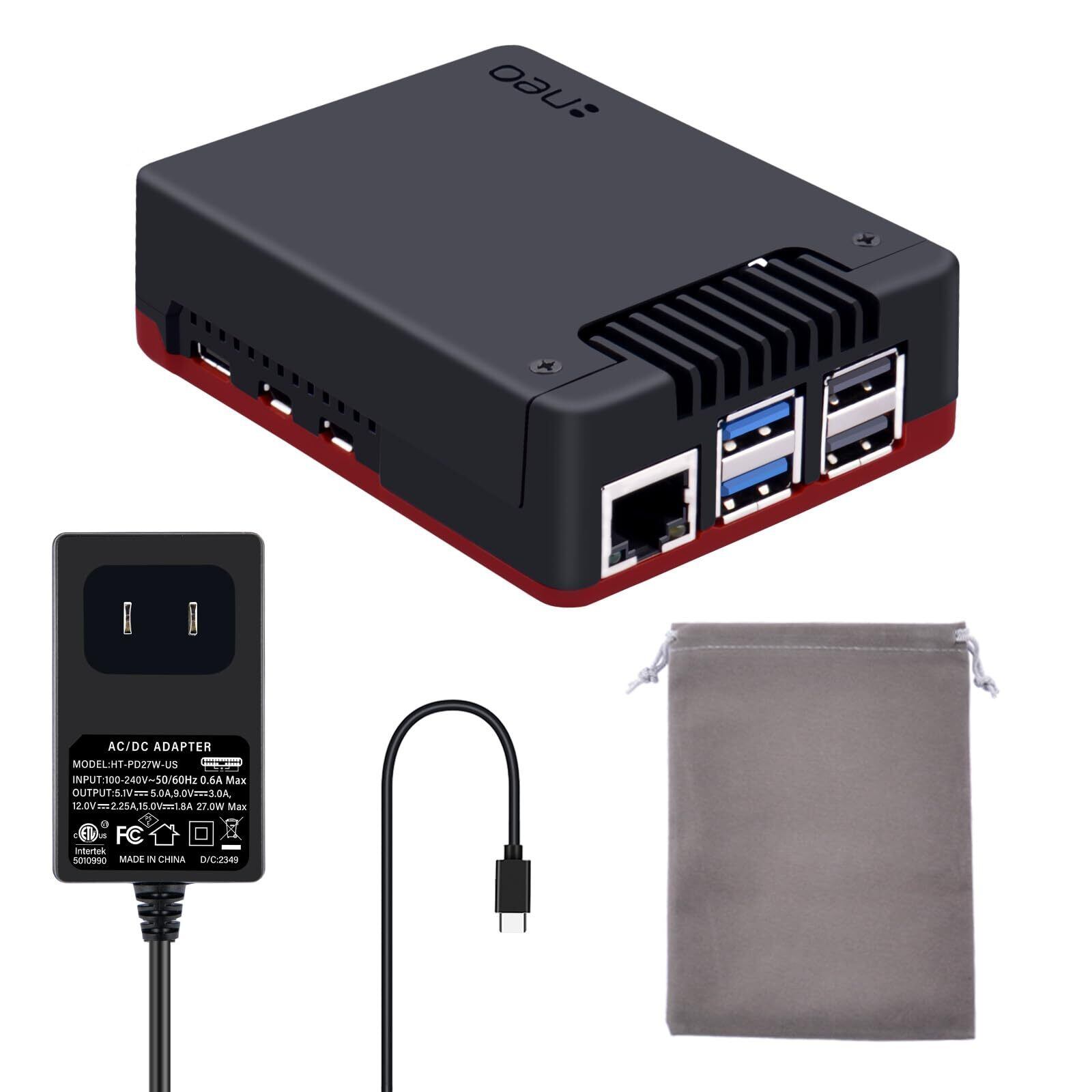 GeeekPi Argon NEO 5 BRED ケース Raspberry Pi 5 27W 5V 5A USB C、Raspberry Pi 5 アルミニウムケース、Argon NEO 5 ブラックレッドケース