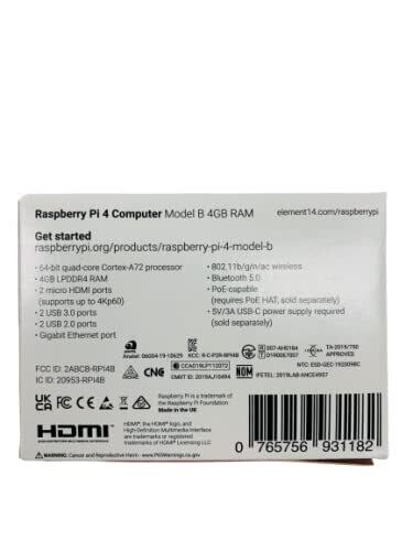 【element14.ver】【国内正規代理店品】Raspberry Pi4 ModelB 4GB ラズベリーパイ4 技適対応品 USB