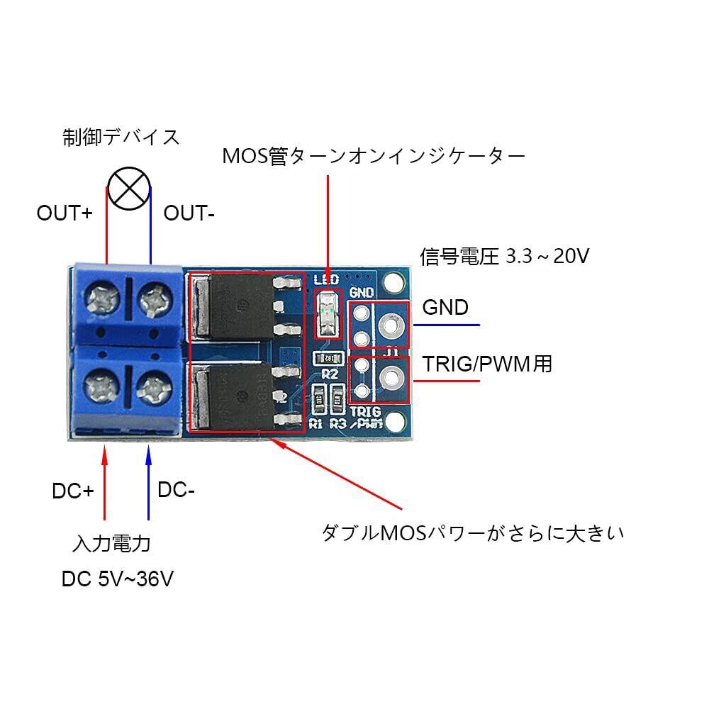 WMYCONGCONG 10個 DC 5V-36V 15A 400W デュアルハイパワーMOSFET トリガースイッチドライブモジュール 0-20KHz 電子スイッチ制御ボードDCモーター速度コントローラーランプ輝度コントロール