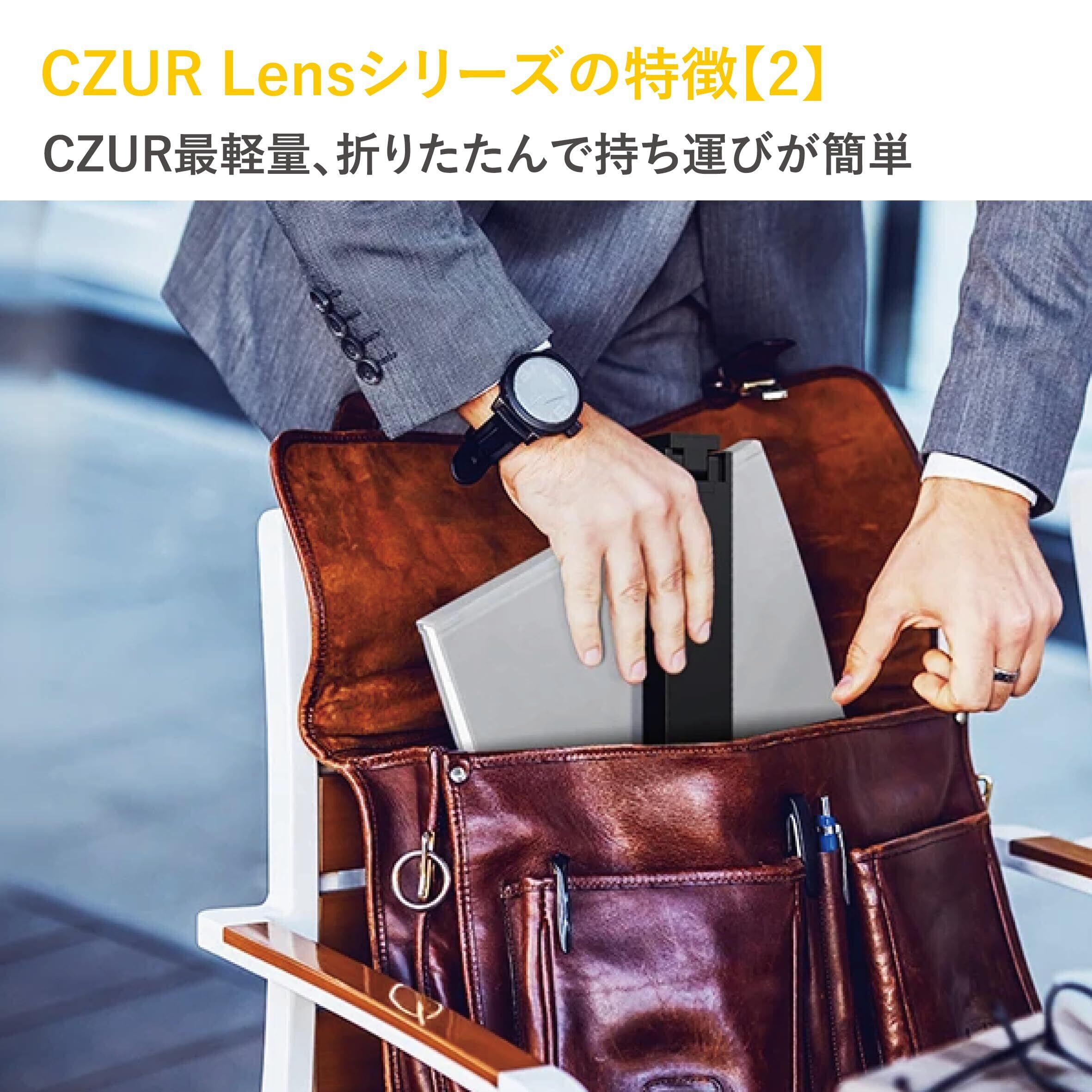 【超軽量&コンパクト】本体重量は、CZURスキャナー史上最軽量の427g。500ml飲料よりも軽く、カバンにサッと入れて、オフィスや自宅、出張先やコワーキングスペースなど、あらゆる場所に持ち運んでいただけます。 注意事項: ①反射を抑えるには、部屋中の照明の当てる角度はドキュメントなどに対しおよそ45度の向きが映りこみも少なくオススメです。 ②本製品には、湾曲補正機能が搭載されていません。書籍のスキャンに対応するモデルは、CZUR Shine Ultraシリーズ、Auraシリーズ、ETシリーズとなります。 ③OCR文字認識について、複数の言語が使用されている場合には、言語設定画面で、使用されている言語をすべて選択してください。操作の詳細はユーザーマニュアルをご参照ください。ご心配な場合は、お問い合わせフォームよりお気軽にご連絡ください。