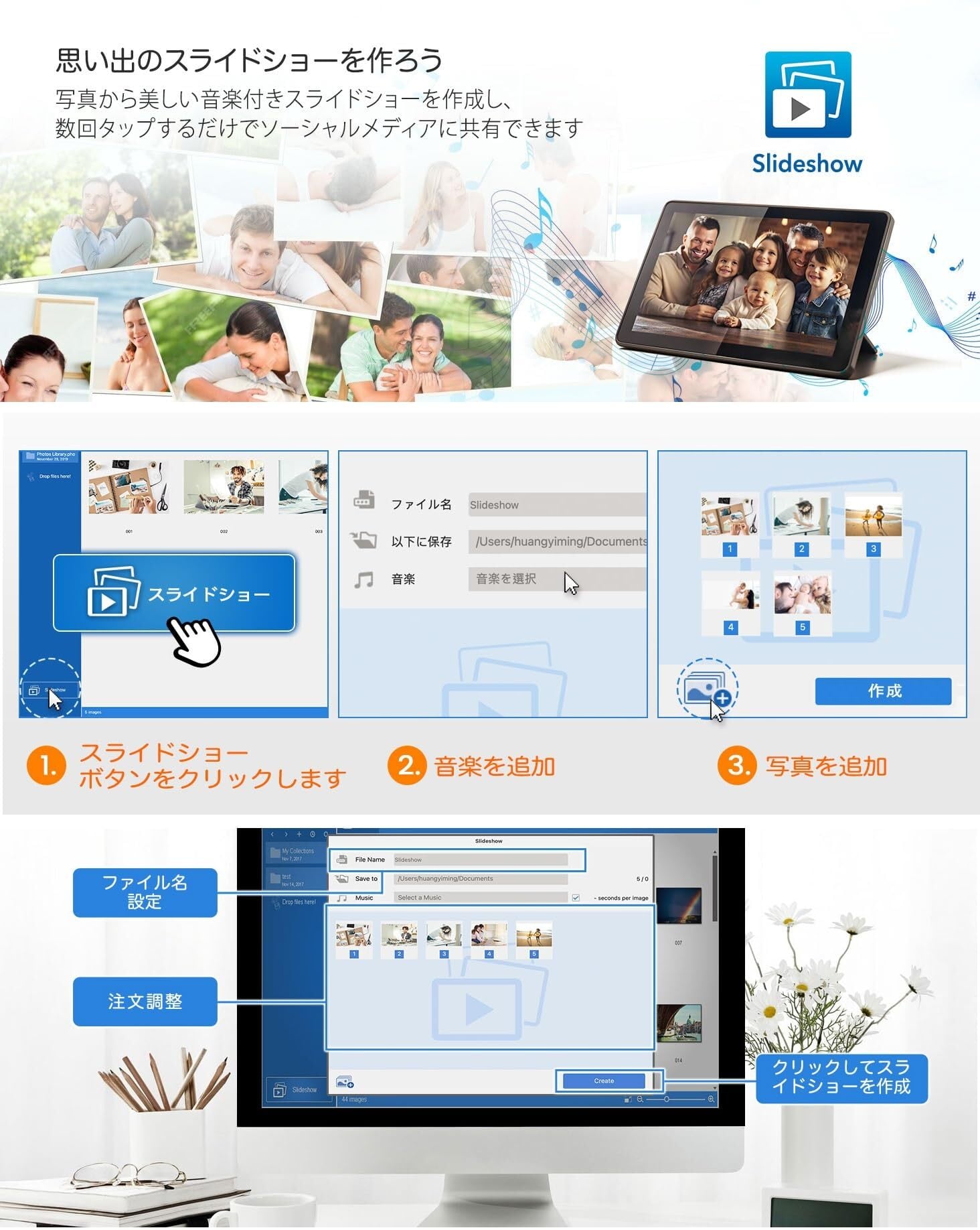 KG判 (4x6) の写真 1 枚で 2 秒、A4サイズ (8x10)の写真 1 枚で 5 秒 @300dpi。 約 1000 枚の写真を簡単に変換してファイルをデジタル化し、家族や友人と 共有できます。