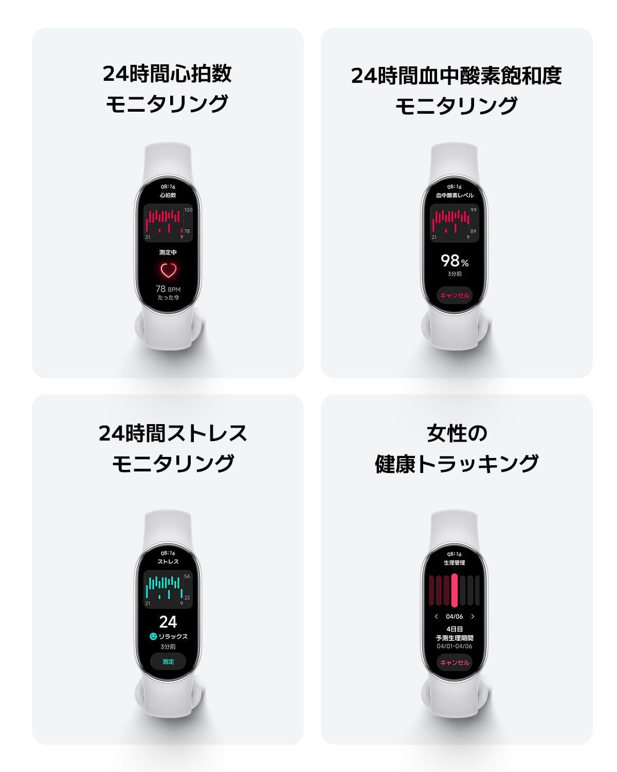 【睡眠モニタリング2.0】入眠・覚醒の検出精度が前世代より向上し、特に「検出の安定性」や「低活動時の誤記録の低減」が強化されました。毎日・毎週・毎月の睡眠データを整理し、わかりやすいレポートとして表示。過去の睡眠データに基づき、国際的な専門機関との連携により、あなたに合わせた睡眠改善の提案やアドバイスを提供します。さらに、血中酸素飽和度やストレスなどの24時間モニタリングにも対応しており、日常の健康管理を総合的にサポートします。