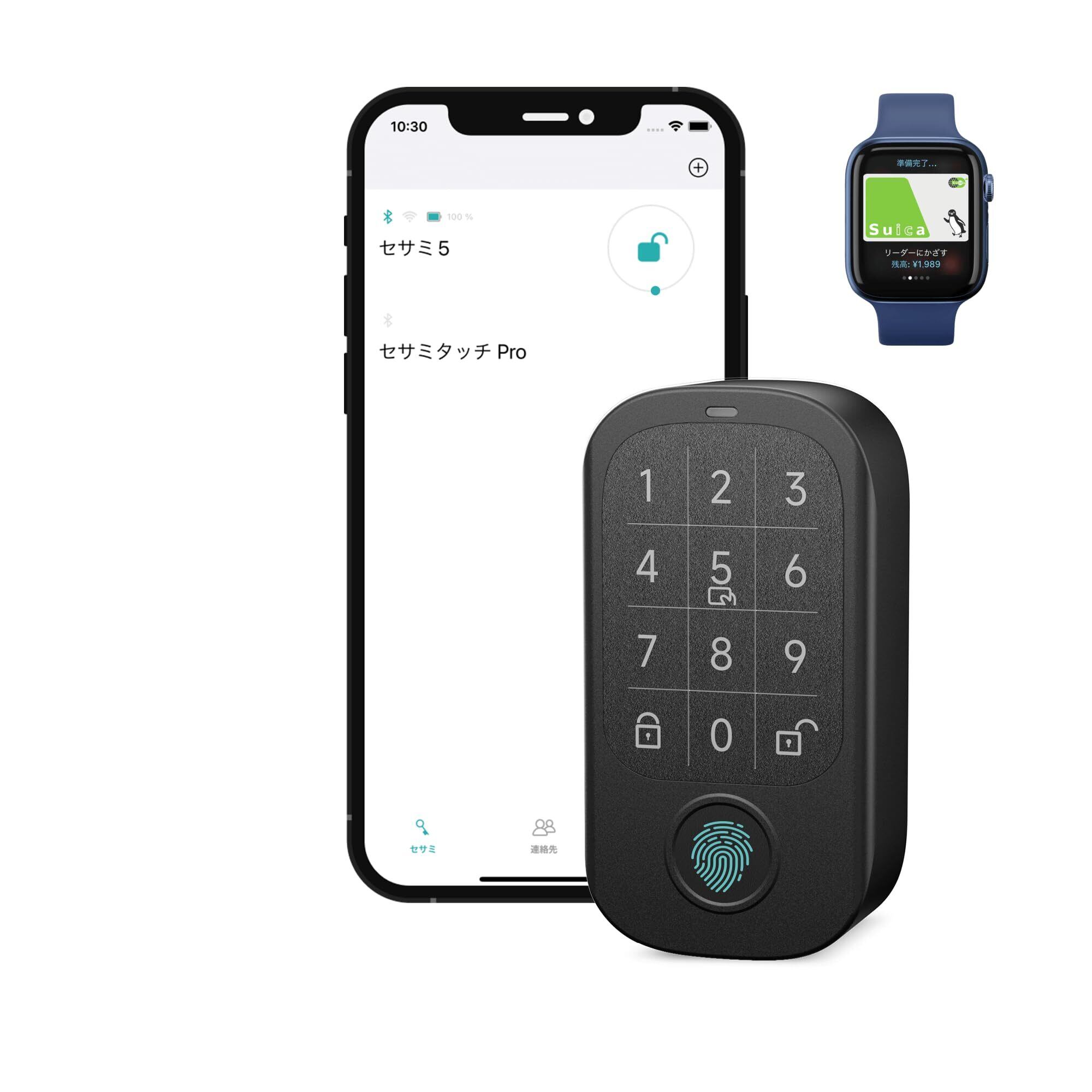 キャンディハウス(Candy House) CANDY HOUSEスマートロック スマートキー 暗証番号 指紋認証パッド ICカードリーダー SESAME TOUCH PRO セサミタッチプロ Suica PASMO対応 Apple watch Felica MIFAIR モバイルSuica 工事不要 取付カンタン 防犯対策