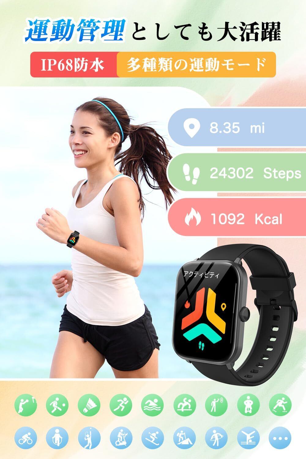 スマートウォッチ【2025改良最新型】Bluetooth通話機能付き 音楽再生 電卓機能 活動量計 iPhone対応&アンドロイド対応 SMS/Line通知 多機能スマートウォッチ 100種類運動モード 生活防水 メッセージ通知 腕時計 天気予報 スポーツウォッチ レディース メンズ 多種類文字盤 Smart Watch プレゼント (ブラック)