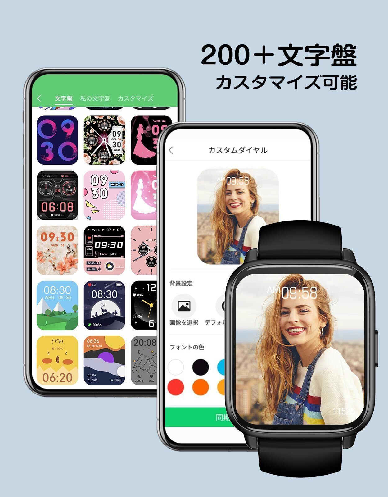 【実用な機能満載&IP68防水】 毎日の歩数や距離、記録するだけでなく、座りがち注意、リラックス機能も備えています。女性の月経周期の記録と通知機能も揃えます。スタイリッシュなデザインは職場や生活の中でレディースもメンズも使用いただけます。スマホ探す、リモコン撮影 、アラーム、タイマー、ストップウォッチ、腕上げ点灯、画面の明るさ調整、おやすみモード、天気予報、懐中電灯、音楽コントロール、多言語対応などの便利機能が満載!IP68規格の防水・防塵性能を持ち、日常生活での手洗いや洗顔の際に取り外す必要がありません。注意:ダイビングや海水浴、サウナでの使用は避けてください。