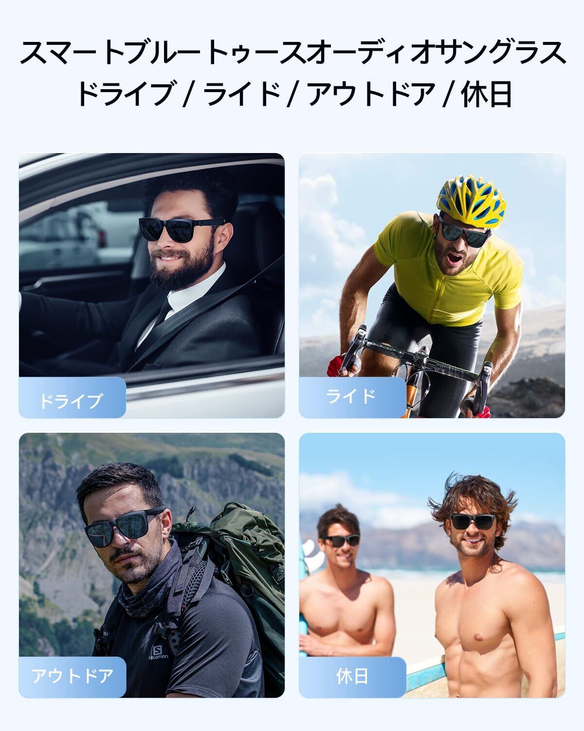 【スマートブルートゥース接続】スマートブルートゥースサングラスは高度なBluetooth 5.3技術を搭載しており、スマートフォン、タブレット、その他のデバイスとシームレスにペアリングできます。ハンズフリー通話やワイヤレス音楽ストリーミングに最適で、このスピーカー付きオーディオグラスは屋外活動、ドライブ、または日常の通勤に最適です。