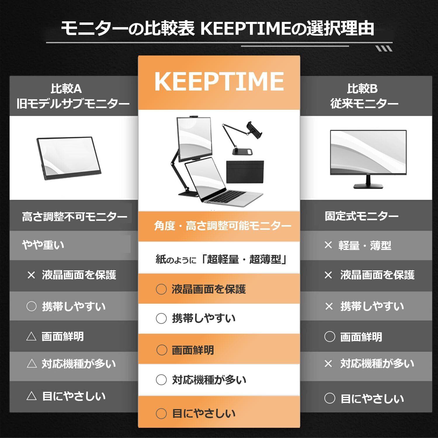 KEEPTIME モバイルモニター 15.6インチ モバイルディスプレイ 卓上スタンド付き 高輝度300nit 100%sRGB広色域 VESA対応 1920x1080FHD 持ち運びモニター 軽量 薄型 IPS液晶パネル USB Type-C/Mini HDMI端末 PS4 PS5/XBOX/Switch/PC/Macなど対応 商務会議 在宅勤務 リモートワーク