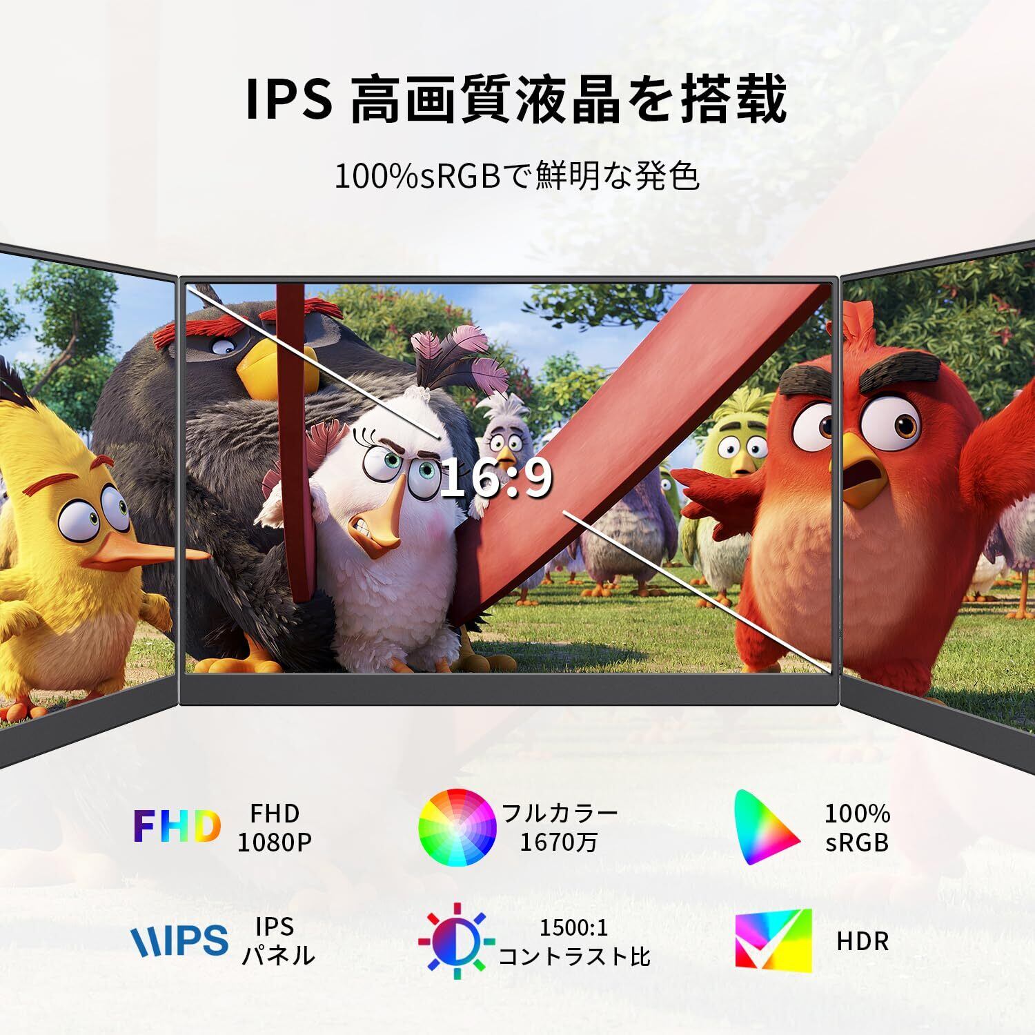 【IPS非光沢パネル & フルHD対応 & ブルーライト軽減】本モバイルモニターは、視認性に優れた非光沢(ノングレア)IPS液晶パネルを採用し、光の反射を抑えてどの角度からでも鮮明な映像を提供します(視野角178°)。解像度は1920×1080のフルHDに対応し、ゲームや映画鑑賞時のリアリズムを高めます。また、長時間の使用でも目が疲れにくいブルーライト軽減モードを搭載し、紙に近い色温度で表示することで、快適な視聴・作業環境を実現します。