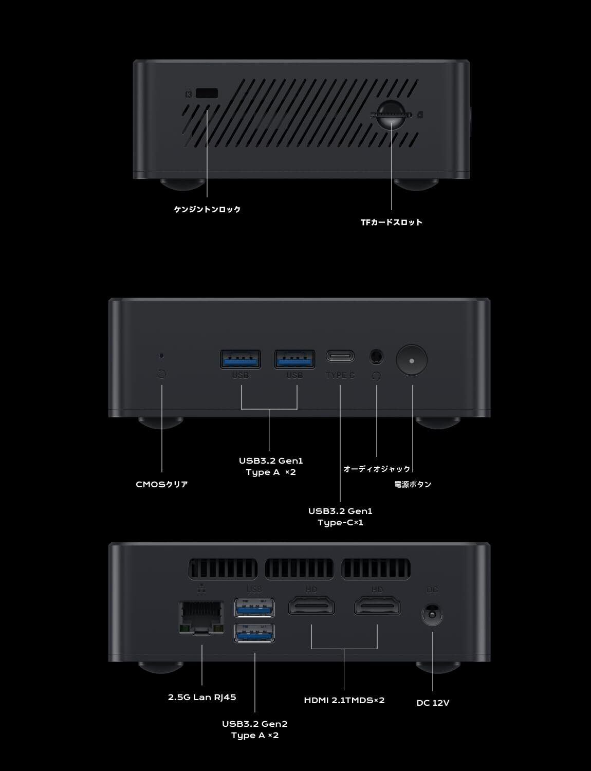 【パッケージ内容】1x UN100P Mini PC、1x HDMIケーブル(60cm)、 1x 電源アダプター、1x日本語取扱説明書、SATAケーブル、1年間メーカー、1か月無料返品、24時間以内安心アフターサービス *何かご不明な点がございましたら、またはMINISFORUM サポート([email protected] )経由でお問い合わせください。