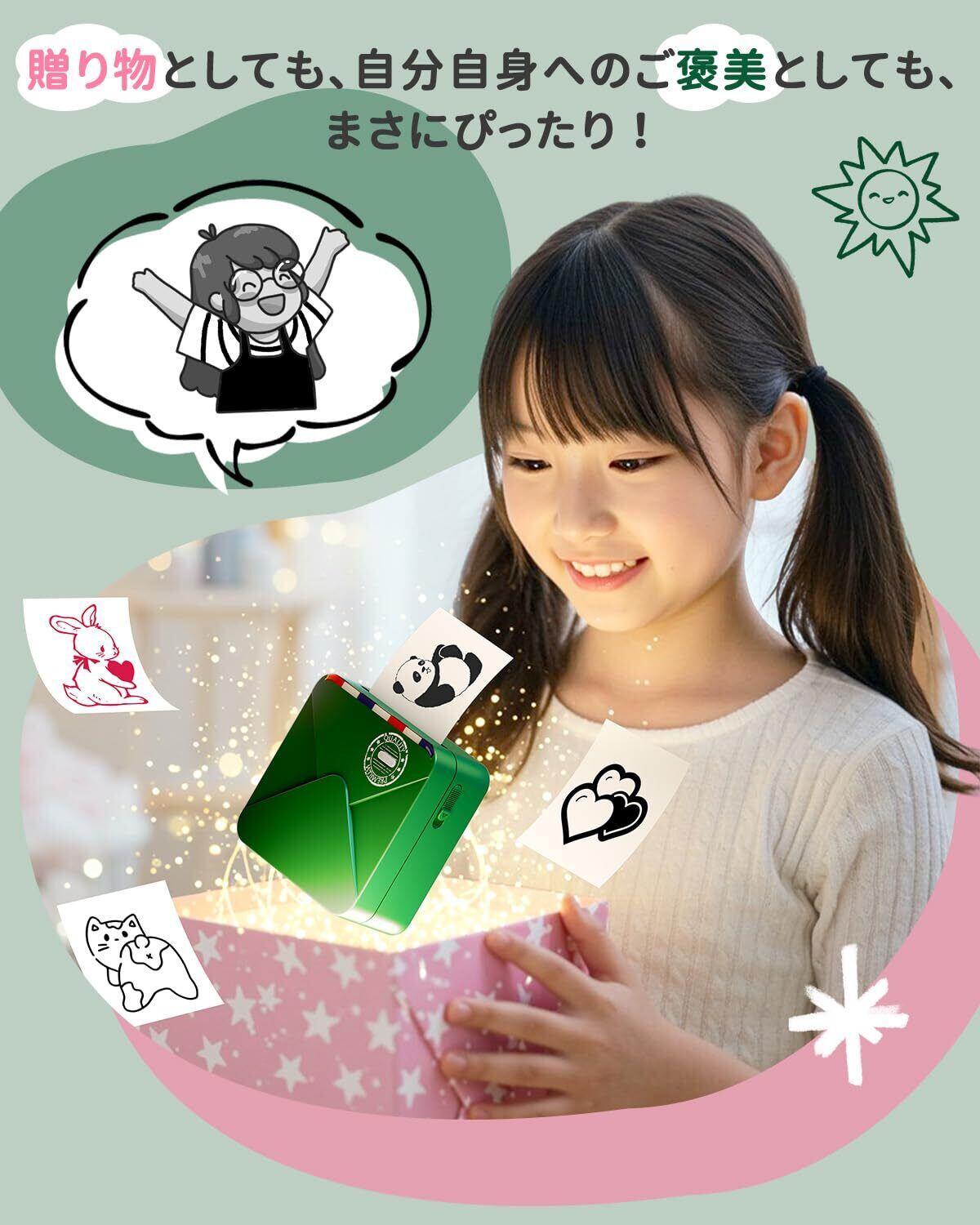 プレゼントにおすすめ:スタイリッシュで可愛いなギフト包装を採用し、Phomemo-M02Sミニプリンター本体x1点、53 mmの白地シールx1巻、25 mmの透明シールx1巻、25 mmの半透明シールx1巻、15 mmのパープルシールx1巻、15 mmのオレンジシールx1巻と15 mmのピンクシールx1巻が含まれています。コンパクトサイズ「86 x 82 x 42 mm」のサーマルプリンター「M02S」は多機能ので、手帳やメモ好きな家族、友人、同僚、子供にクリスマス、ハロウィーン、感謝祭、正月や誕生日のプレゼントにおすすめです