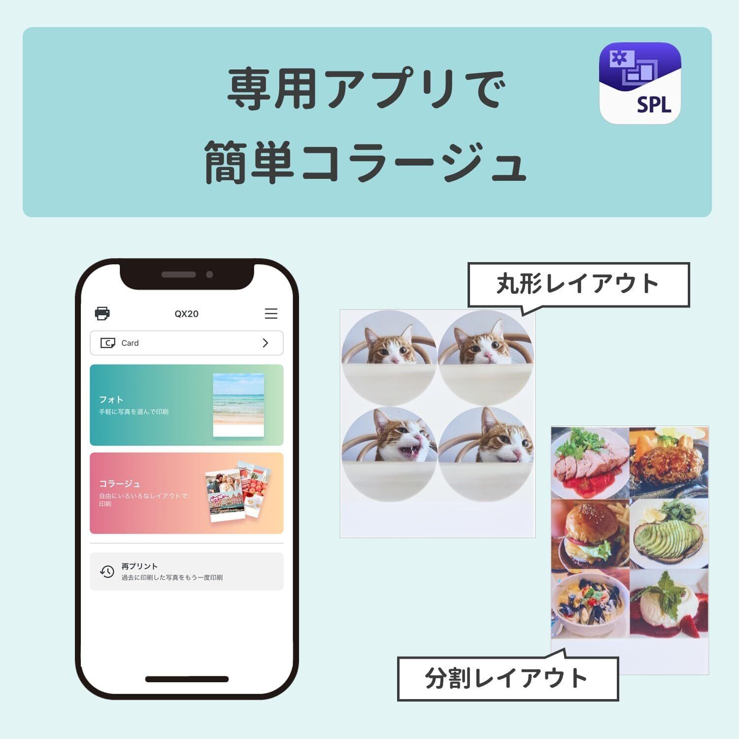 スマホ専用ミニフォトプリンター。シール紙印刷(カードサイズ・スクエアフォーマット対応)QRコードを読み取るだけでスマホと接続が簡単。オーバーコート仕上げで大切な写真を水や汚れから守ります。
