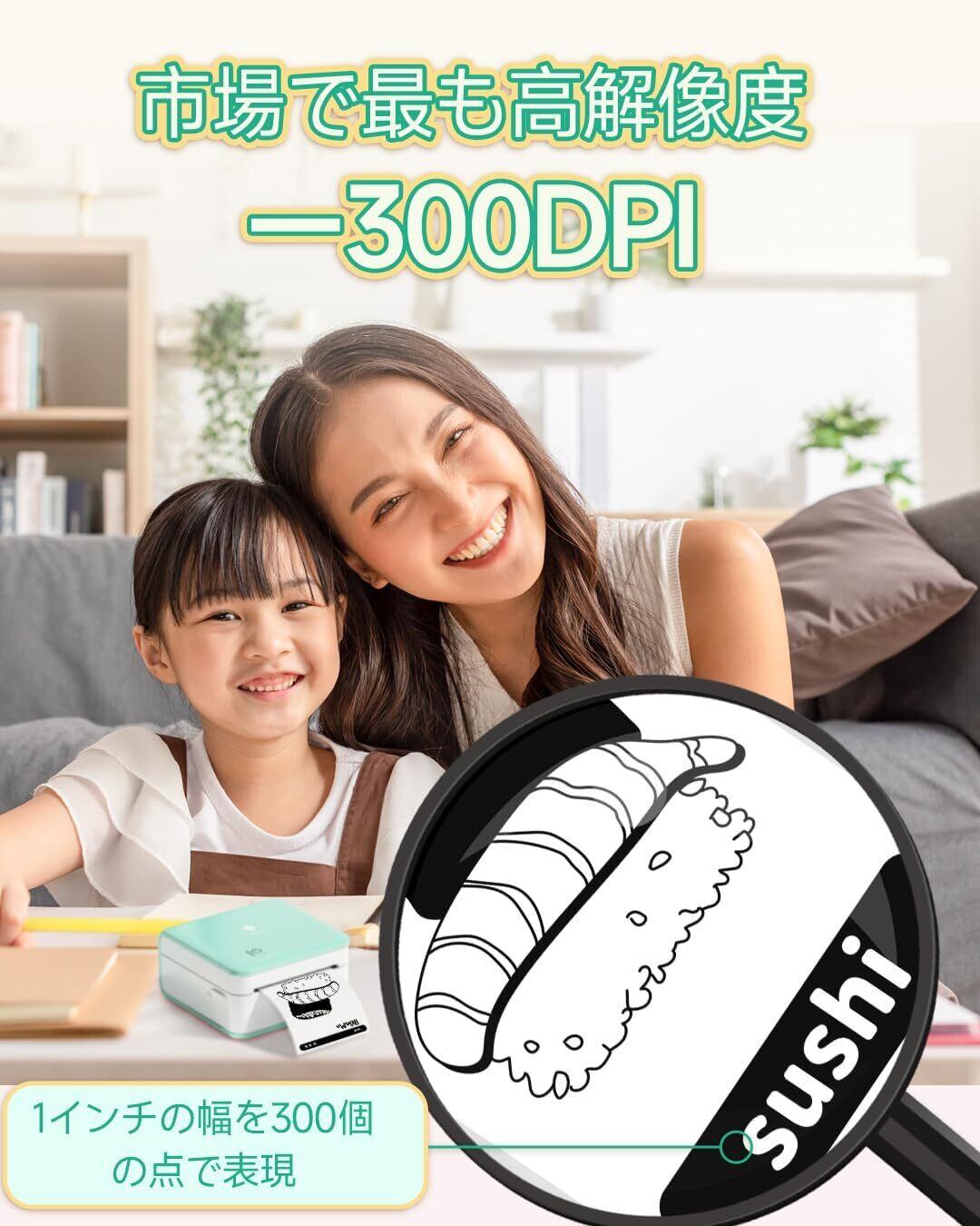 サーマルプリンター ミニプリター Phomemo M02 PRO 300DPI フォトぷりんたー モバイルぷりんたー シール印刷機 ポータブル式 フォトプリンタ メモプリンタ 感熱 Bluetooth接続 写真・メモ・手帳・領収書・ラベル 学生用 在宅勤務 自宅学習 多国言語対応APP 日本語取扱説明書 グリーン