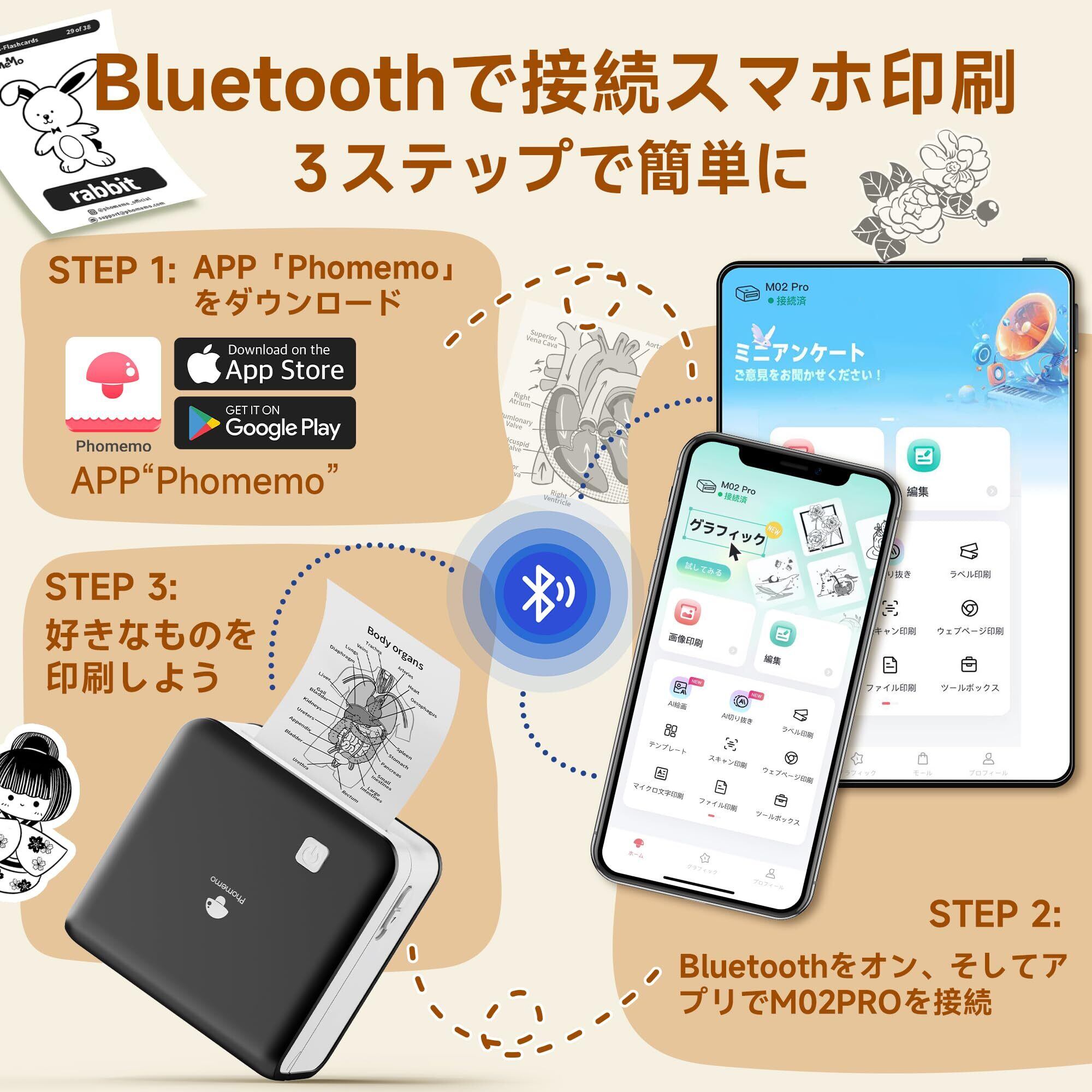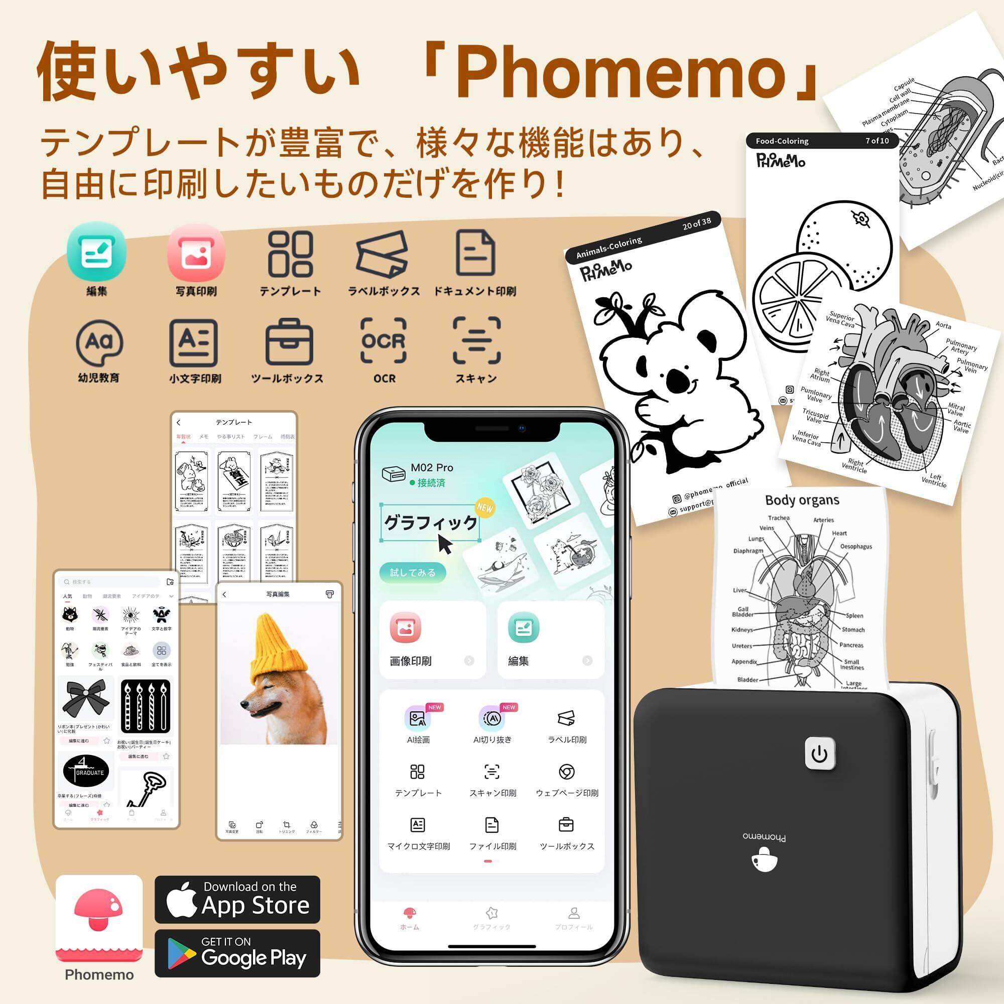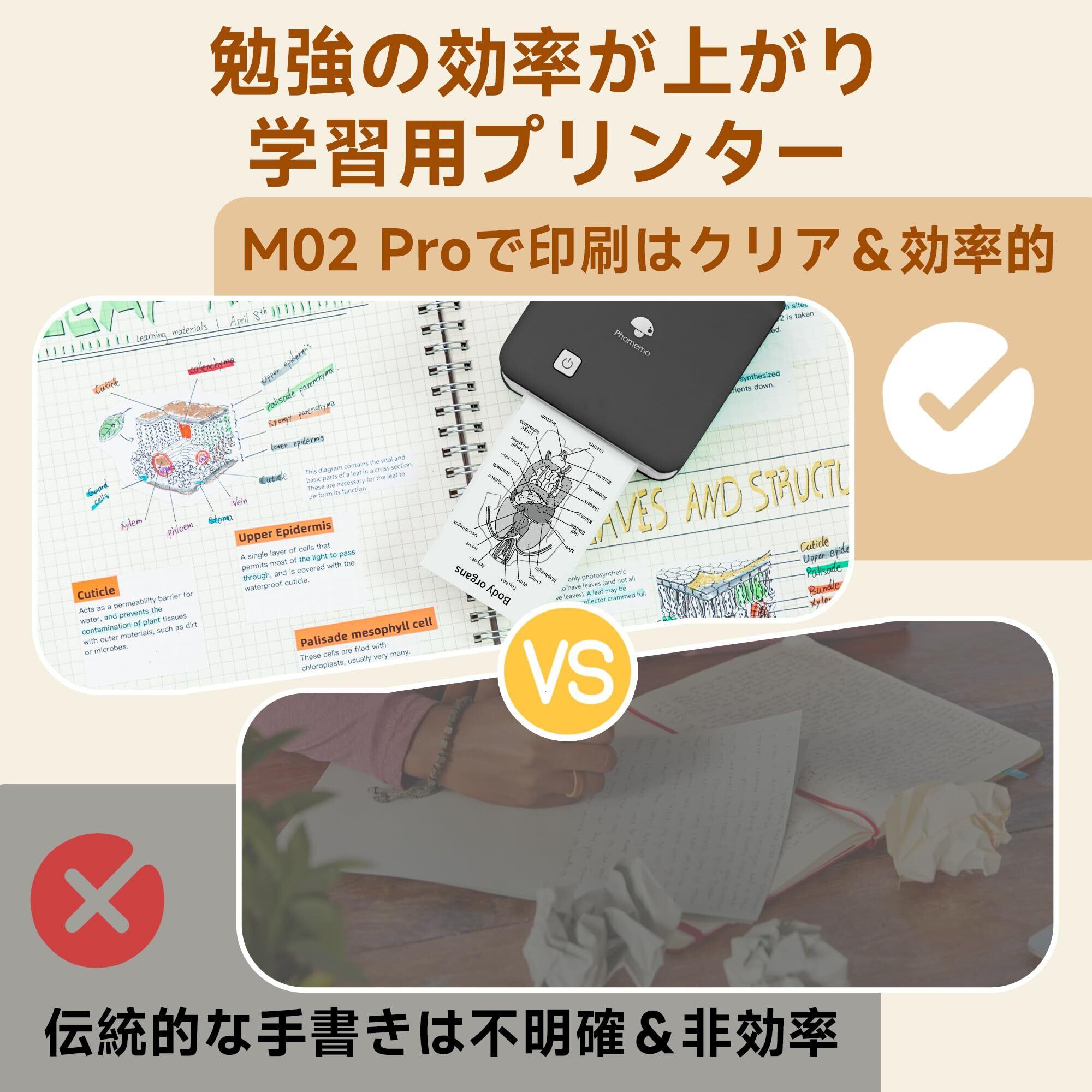 Phomemo ミニプリンター サーマルプリンター M02 Pro 300DPI スマホ対応 ポータブル式 モバイルぷりんたー ポータブル式 フォトプリンタ メモ ステッカー プリンタ ポケットぷりんたー 感熱 白黒 写真印刷 Bluetooth接続 勉強・手帳・メモ・ラベル 学生用 在宅勤務 自宅学習 多国言語対応APP 日本語取扱説明書 ブラック