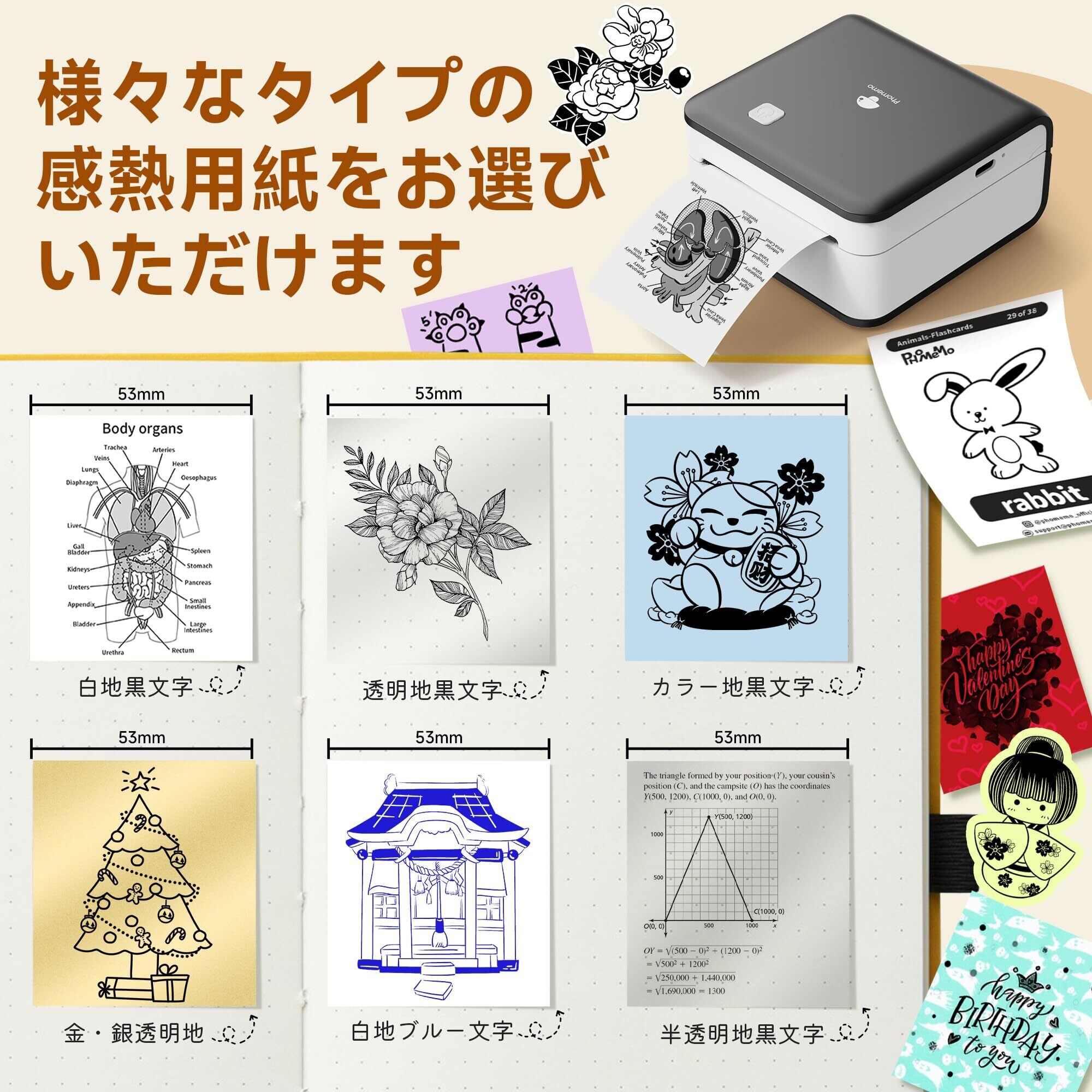 ミニとファッションデザイン:コンパクトサイズと強力なシェルがありますので、どこにでもこのミニプリンターを持ち込むことができます。例えば飛行機です。サーマルプリンター「M02 PRO」はシンプルでスタイリッシュなデザインがあるので、家族、友人、同僚、子供へクリスマス、ハロウィーン、感謝祭、正月の贈り物におすすめです