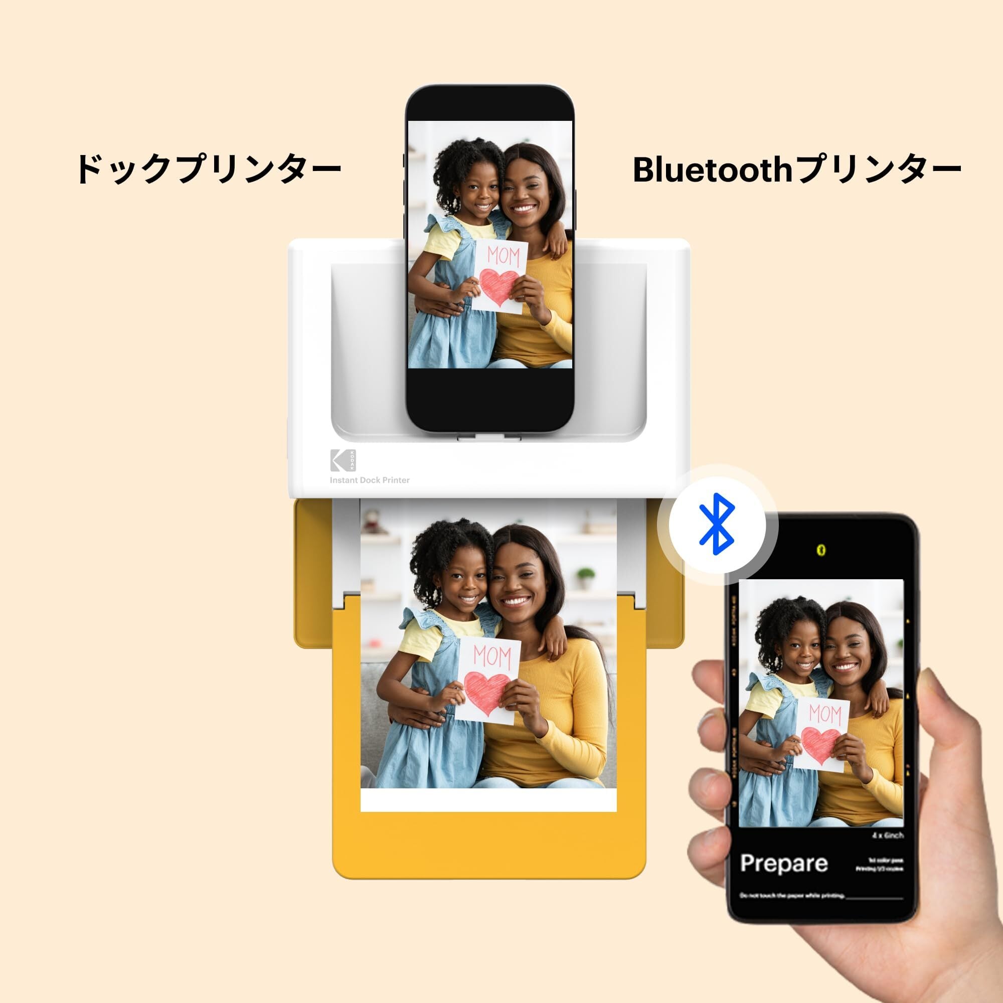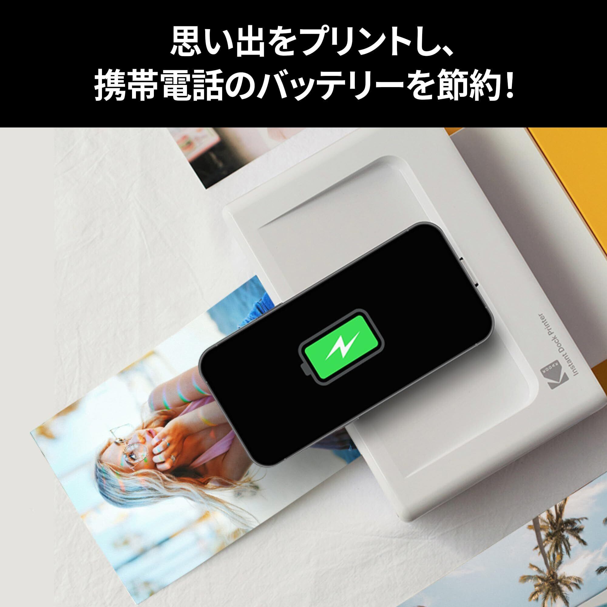 プリントと充電機能 : Kodak Dock Plus フォトプリンタでスマホを挿して充電したり、お気に入りの写真を印刷することができます。 Kodak Dock Plusは、Apple、iPad、Androidなど、ワイヤレス Bluetooth接続もサポートしています。プリントと共に充電もできるのでお得です!