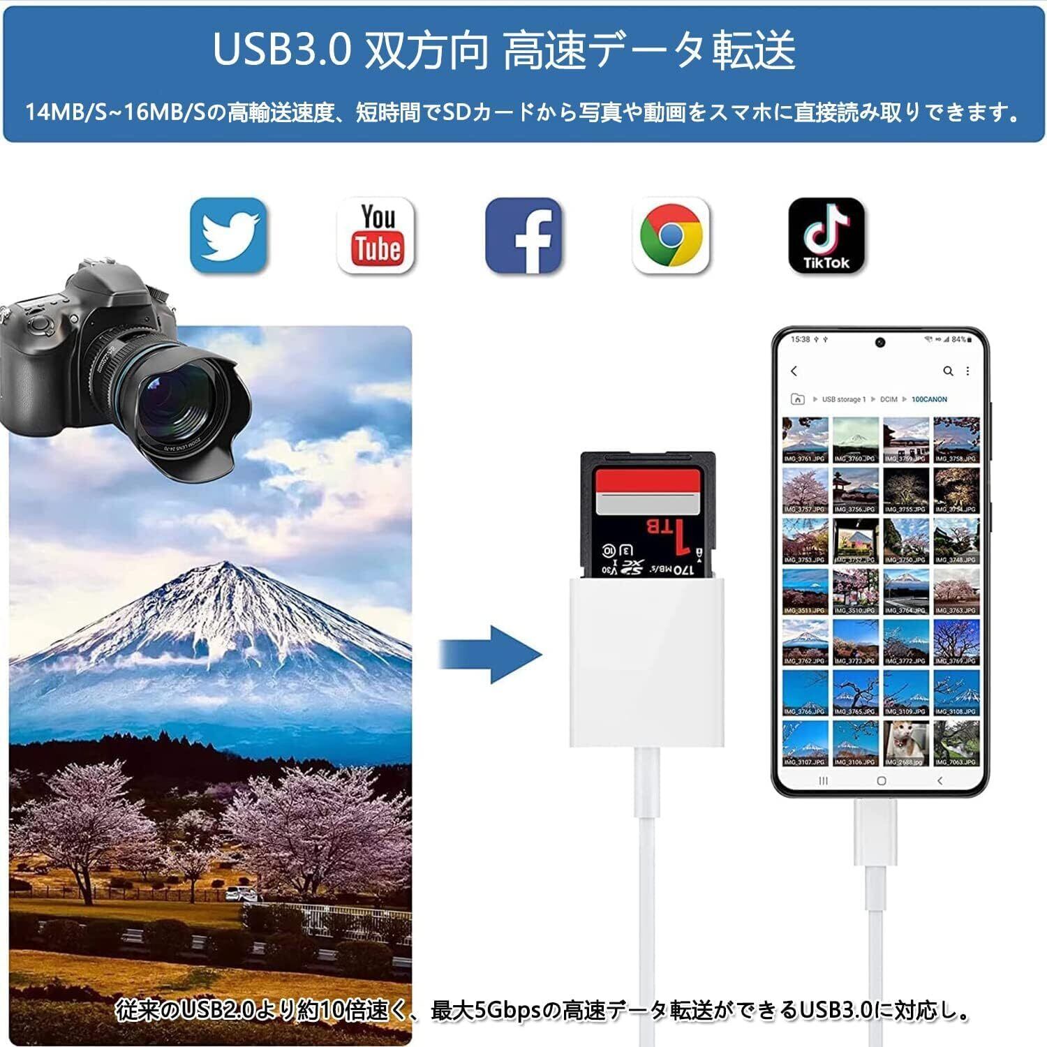 【USB3.0高速双方向転送】従来のUSB2.0より約10倍速く、最大5Gbpsの高速データ転送ができるUSB3.0に対応し、数秒内でスマホの容量を圧迫している写真や動画や各種ファイルをSD/TFカードに移行させて、容量不足が解消できます。14MB/S~16MB/Sの高輸送速度、短時間でSDカードから写真や動画をスマホに直接読み取りできます。