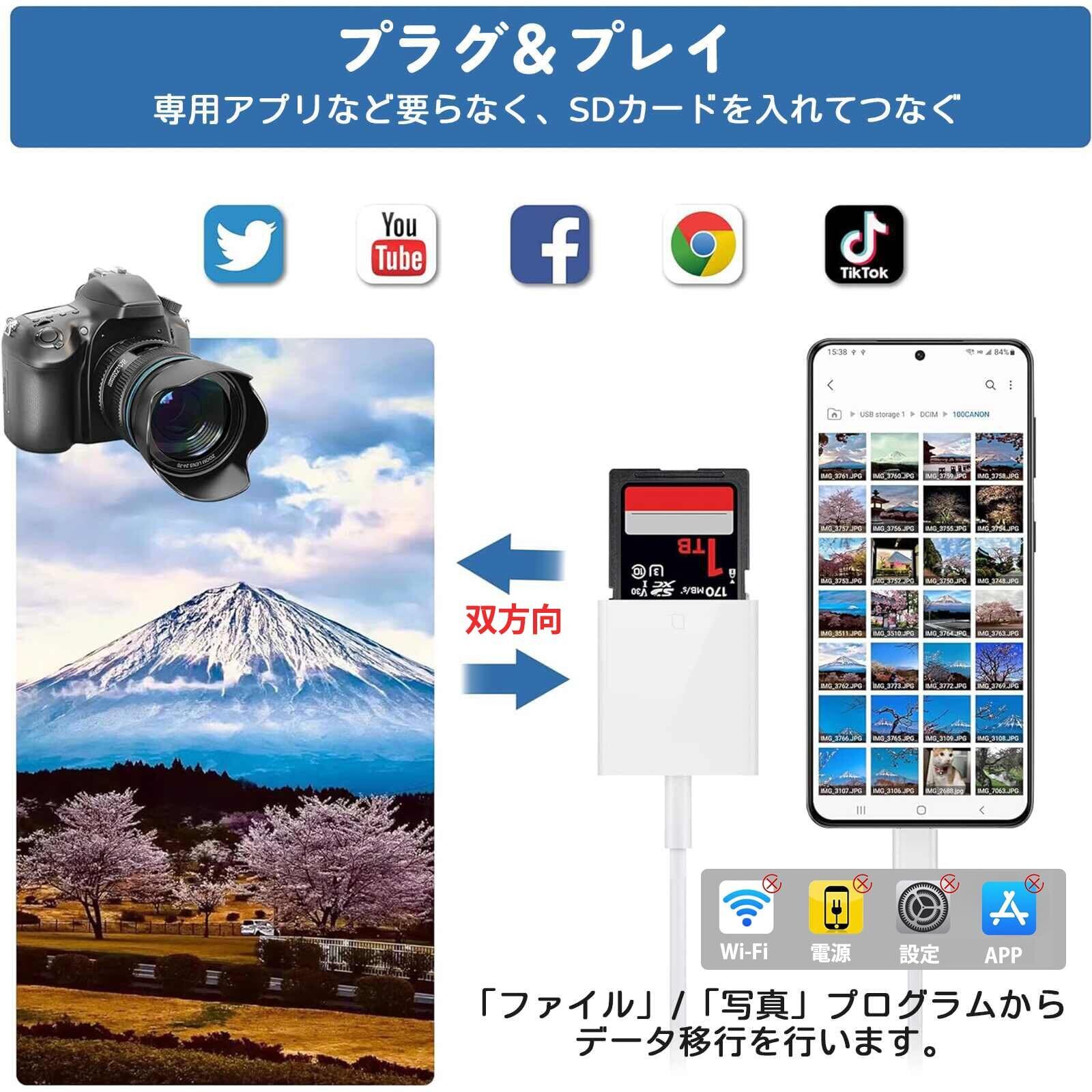 【プラグ&プレイ・写真愛好家向け】アプリや設定は要らなく、SDカードを差し込みだけで簡単に読み込みできて写真を転送できます。コンパクトなデザインで、旅行にも持ち運びも便利です。このsd card readerを使用すれば、いつでもどこでもデジカメで撮影した写真やビデオを友人と共有したり、インスタに投稿したりすることができます。