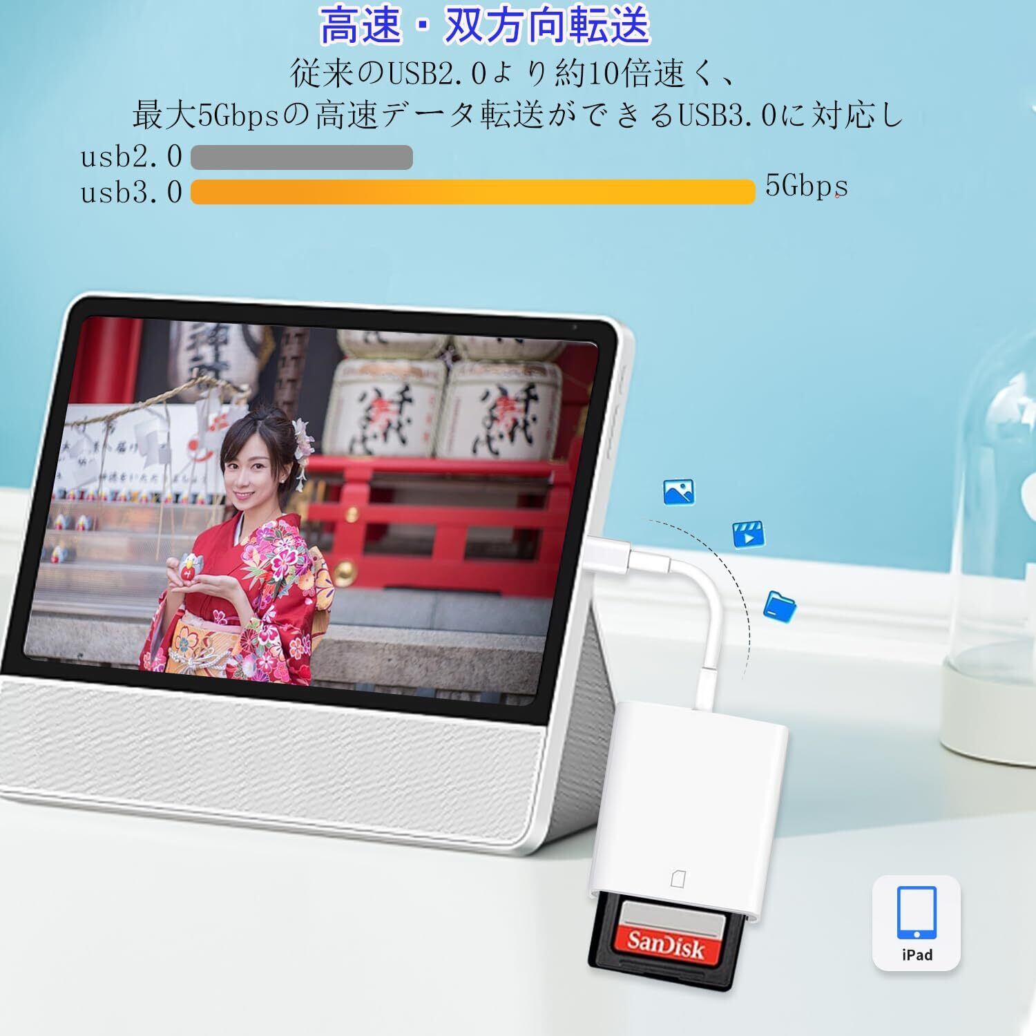【高速データ転送】当社の SD カード リーダーは、2025年に最新の「プロセッサ」を追加し、転送速度と読み取り速度が速いです。最大540Mbpsの超高速データ転送できる同時に接続された機器をより安全で安定した状態にします。フォトアルバム、ビデオ、映画などを瞬時に転送できます。100枚の写真をわずか数秒で転送できます。双方向:スマホからSD/TFカード/USBメモリへ、SD/TFカード/USBメモリからスマホへ、両方ともサーポートできます。データ転送は速くて簡単!