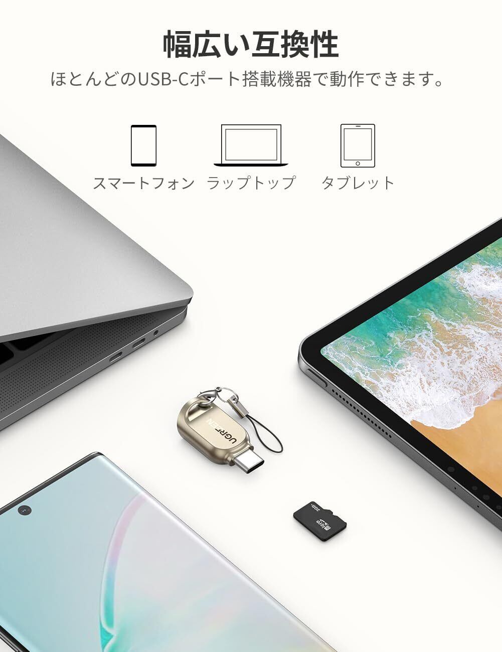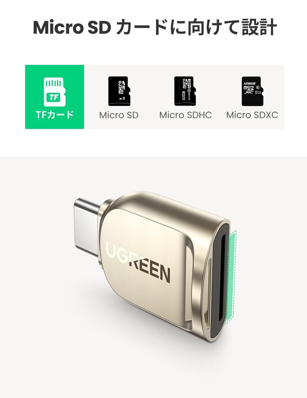 UGREEN microSD USB C カードリーダー TF マイクロSDカード リーダー 超小型 高速転送 タイプC OTG対応 Android iPadOS Windows MacOS Linux対応 亜鉛合金