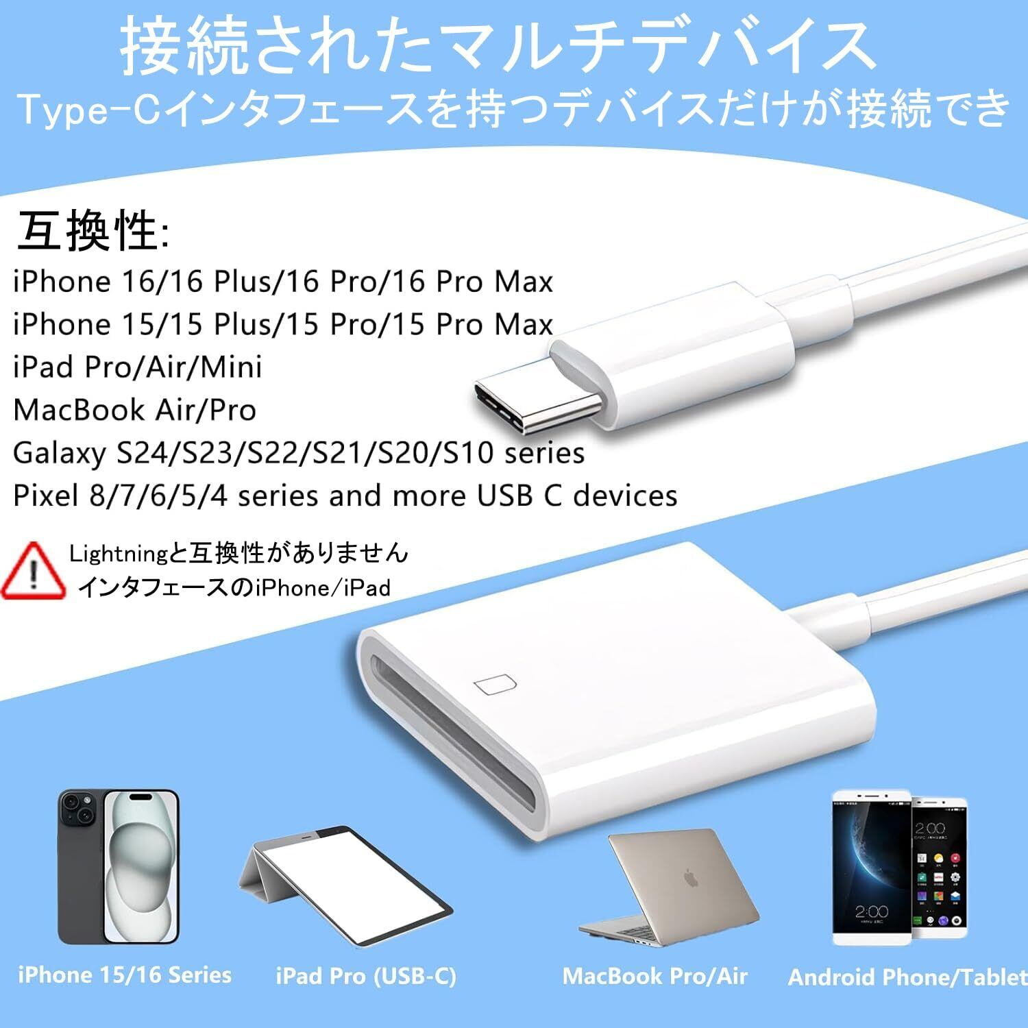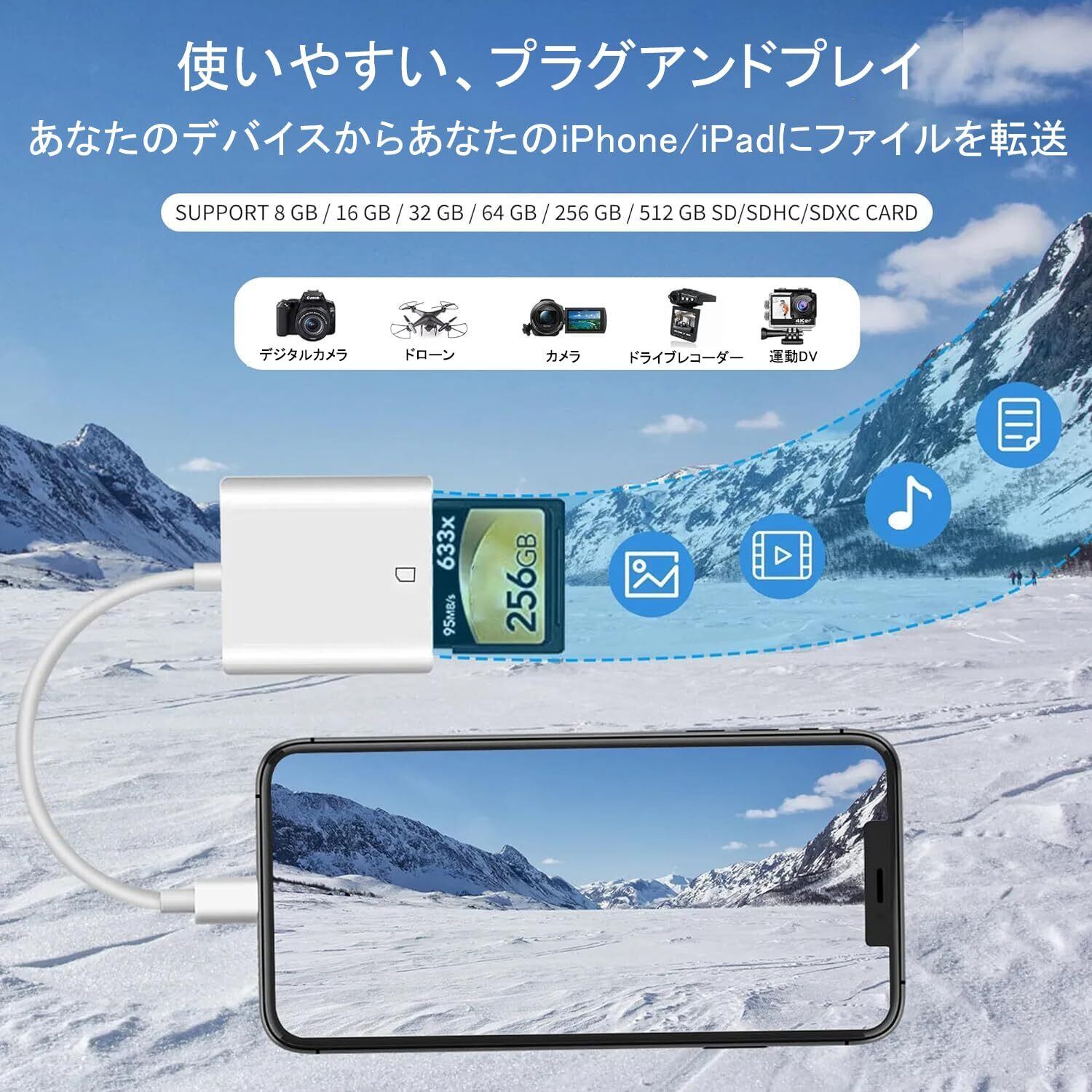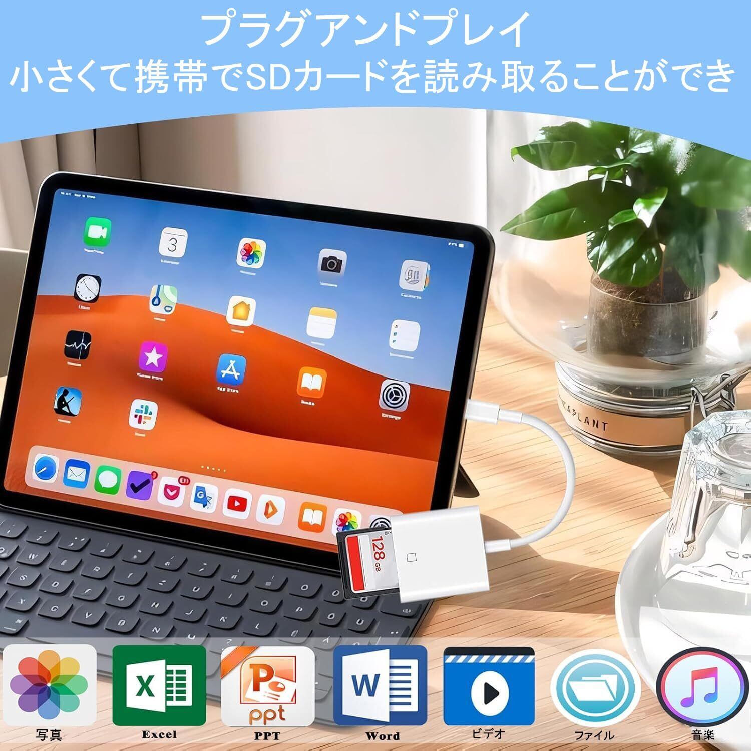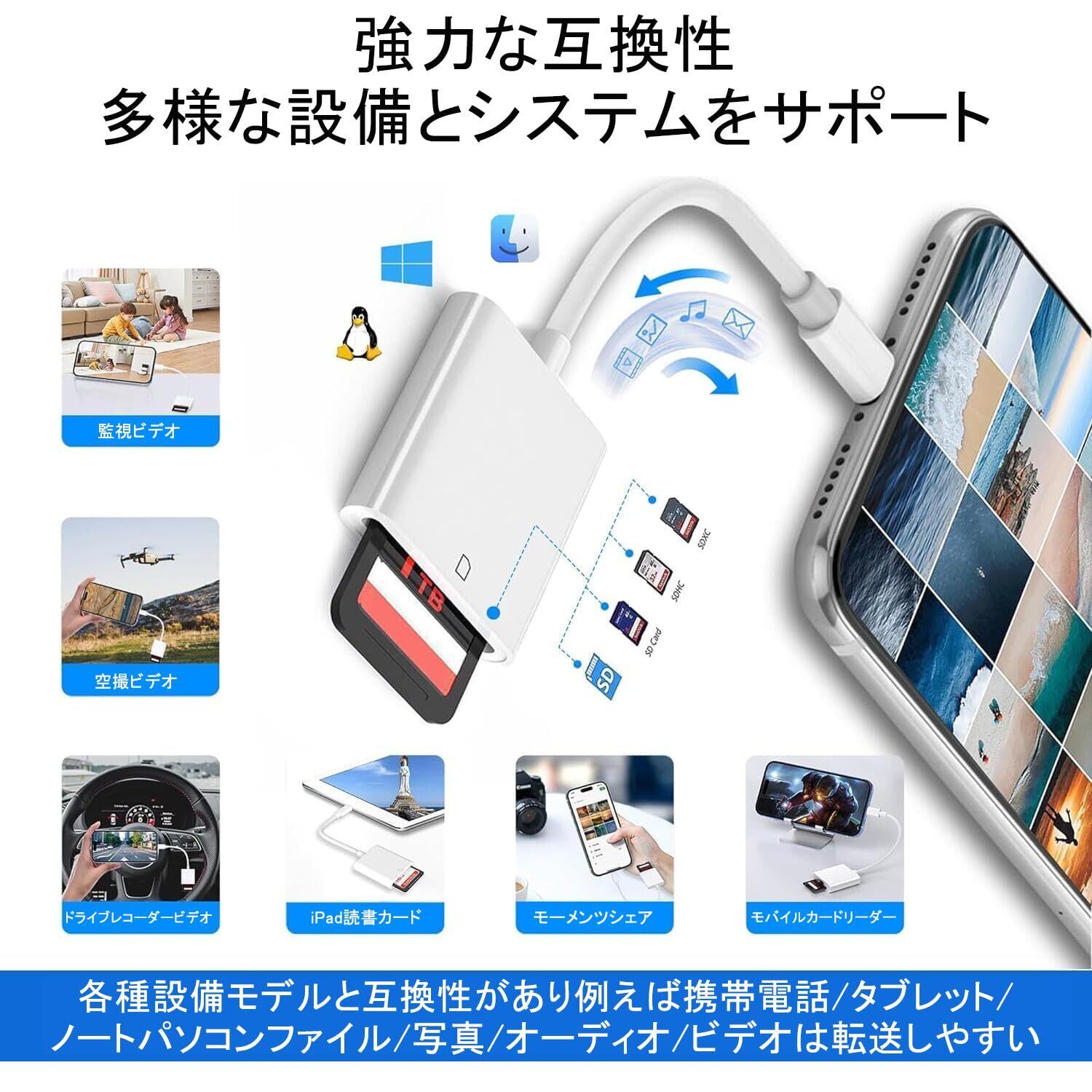 【操作簡単・挿すだけ】ライトニング sdカードリーダー iphone カードリーダー sd カードリーダー sd カードリーダー インターネット環境は不要 専用アプリやドライバーなど面倒な設定もいらなくて、Type-SDカードリーダーを挿すだけで接続になり、簡単にファイルの同期や転送、共有ができますOTG機能対応で、パソコンがなくても、データーの即転送が可能です旅行中、いつでもお気に入りの写真やビデオを家族や友人と、またはソーシャル アプリで共有できます。