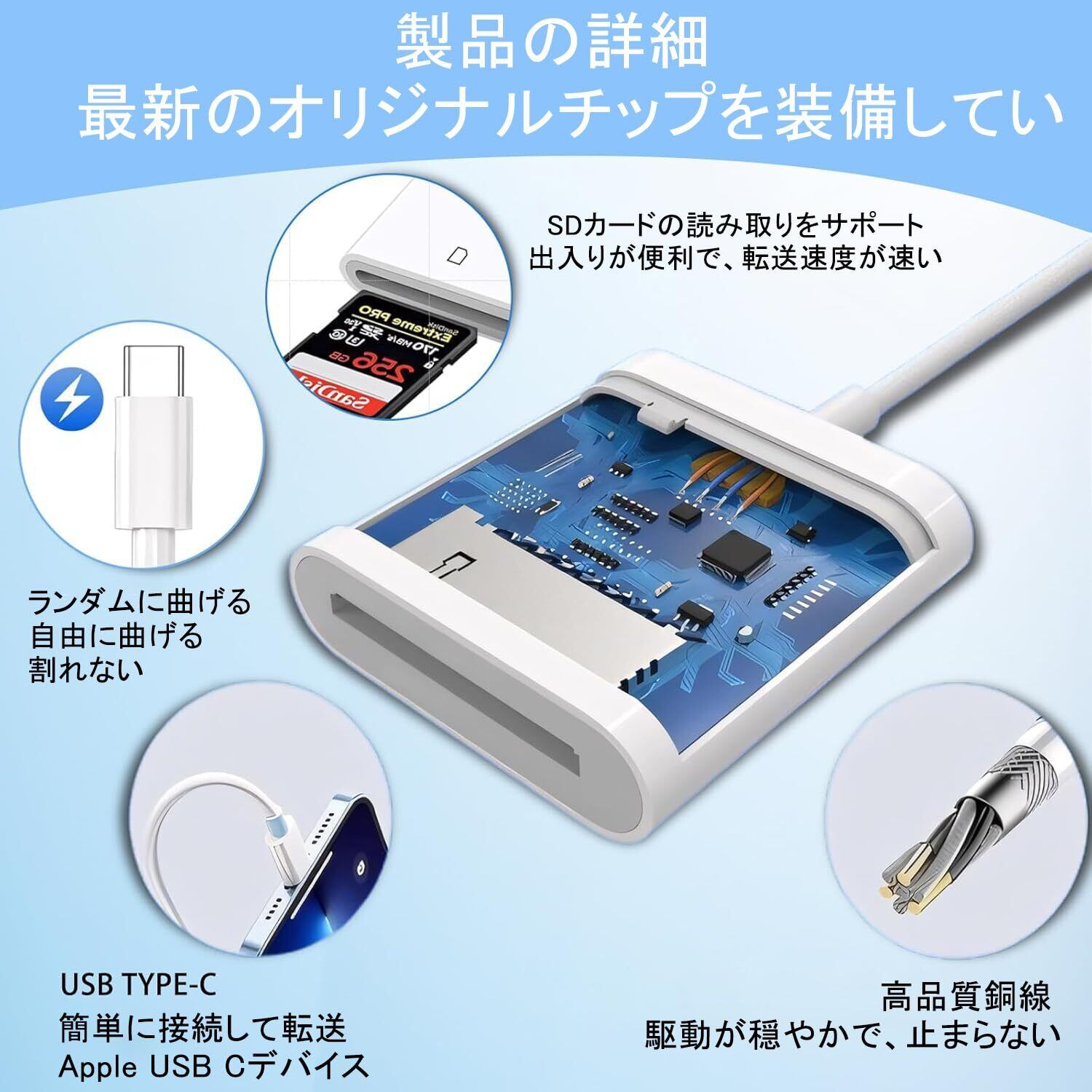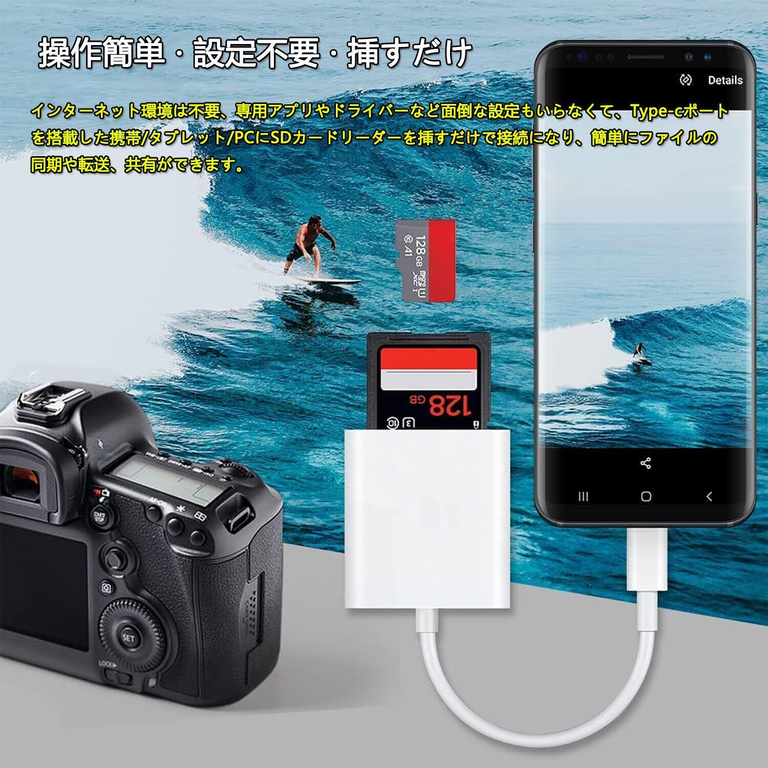 【双向高速ドライブ】sdカードリーダー iphone sdカードリーダー タイプc 新モデルの高品質カードリーダー sd カードリーダー 高品質なチップを採用しており、sd カードリーダー 写真/動画/音楽/ファイルは双方向の送信と読み取りをサポートしており、14MB/S~16MB/Sの高輸送速度、ipadカードリーダーsd ExcelやPDFなどの書類データも転送可能。利便性を大幅に向上、面倒な設定はもうありません。