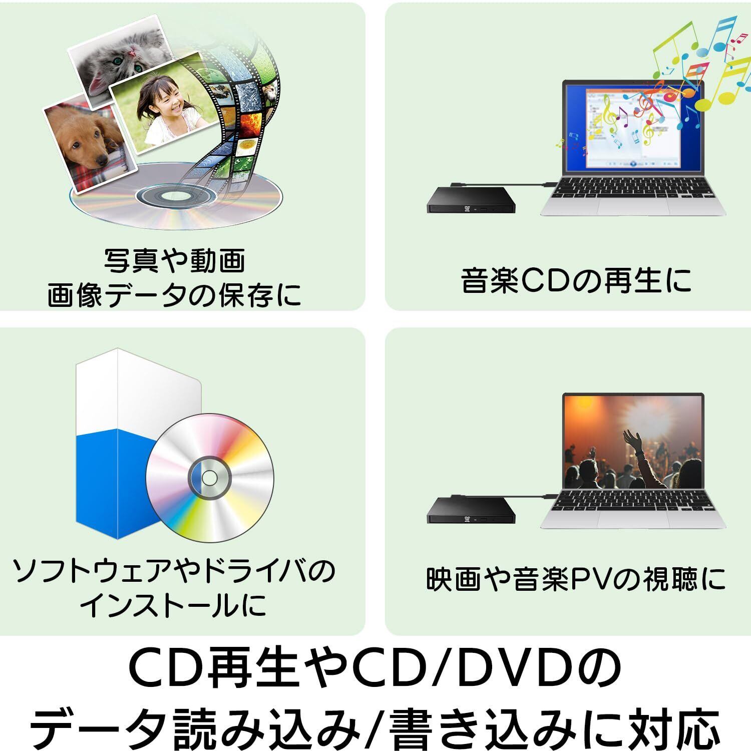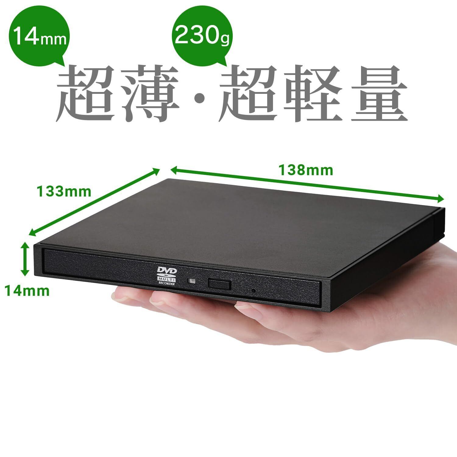 ロジテックダイレクト DVD ドライブ 外付け Windows Mac 対応 USB Type-C 超薄型 超軽量 ポータブル M-Disc対応 CDドライブ ケーブル付 ソフトなし Windows11 書き込み 読み込み バスパワー LDR-LPXAW8CU2NB