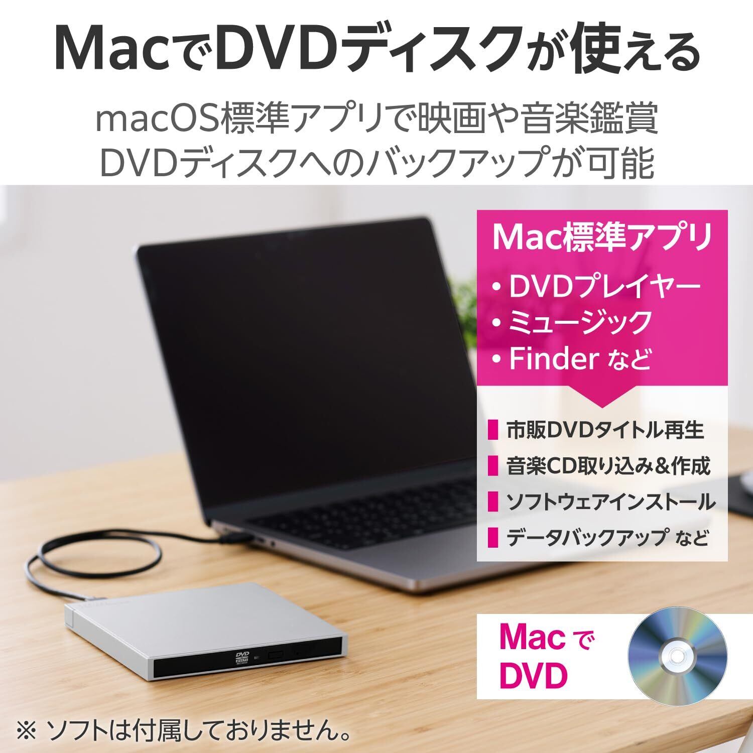 USB 5Gbps(USB3.2(Gen1))対応ポータブルDVDドライブ for Macです。