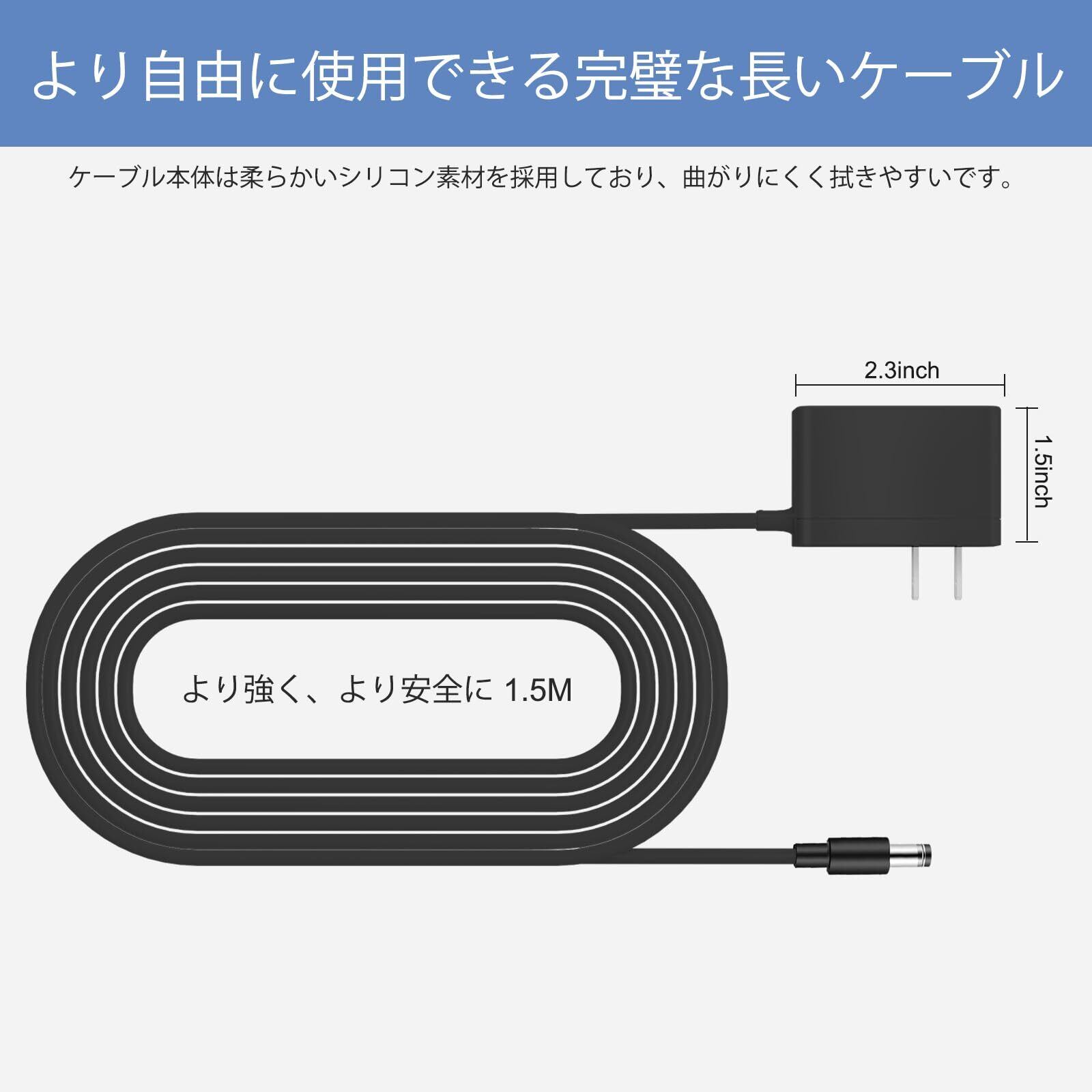 「製品仕様」入力: 100-240 V 50-60 Hz、出力: 5 V 3 A、充電ケーブル長: 150 cm