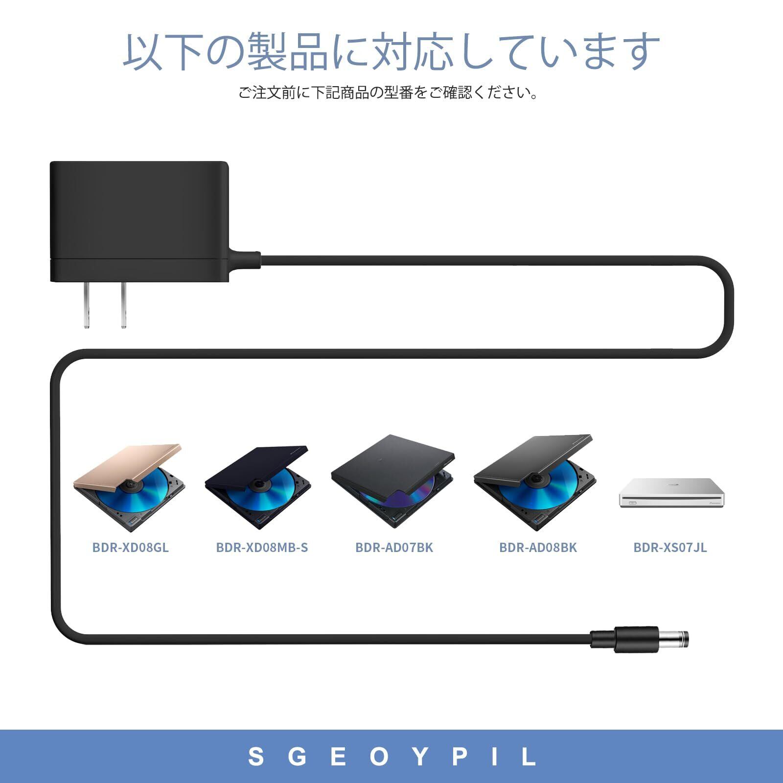 ブルーレイドライブ 外付け ACアダプター 対応パイオニア(Pioneer) windows11ブルーレイプレーヤー、blurayドライブ 外付けBDR-XU02・BDR-XU03・BDR-XD08・BDR-XS06・AD08・XS07・XD07・AD07シリーズ交換用dvdドライブ 外付け充電アダプター