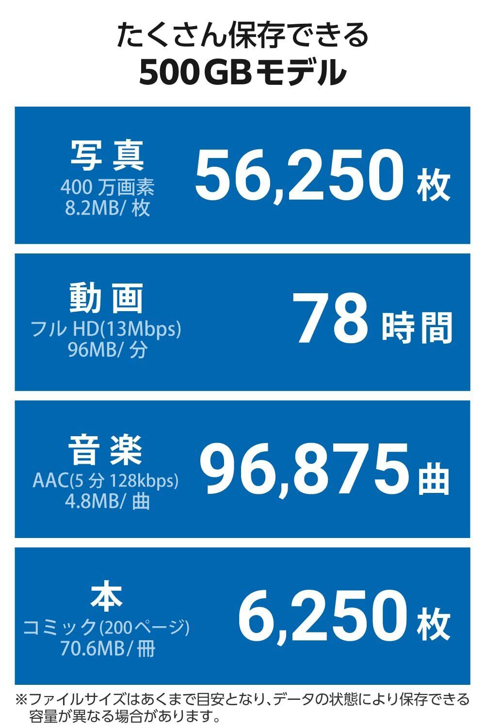 デジタルストレージ容量 500 GB