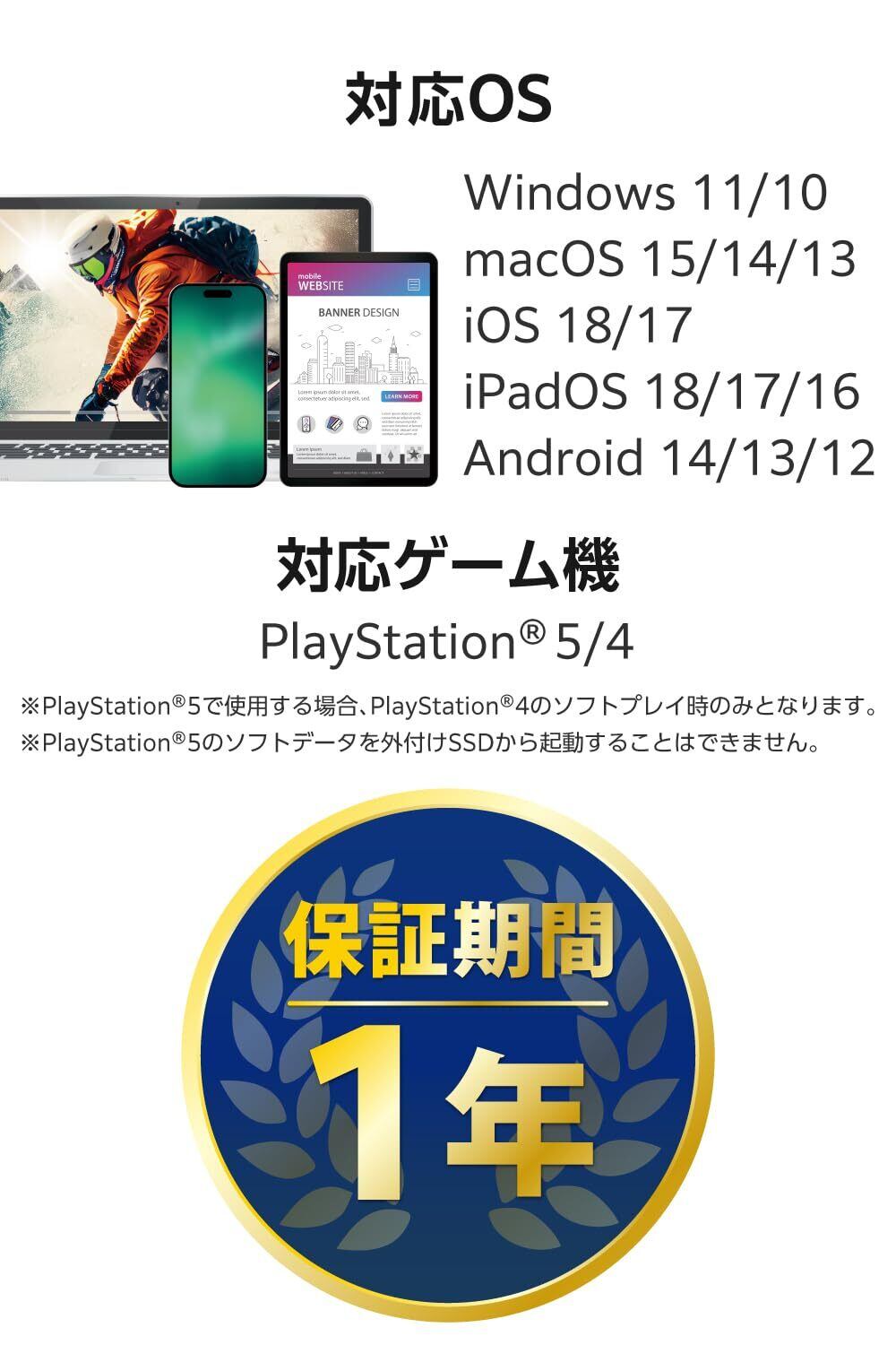 PlayStation(R) 5、PlayStation(R) 4 Pro、PlayStation(R) 4での動作確認済み。ゲームデータを外付けSSDに保存することで、ゲームの起動時間やセーブデータのロード時間が短縮され、より快適なゲームプレイが可能です。