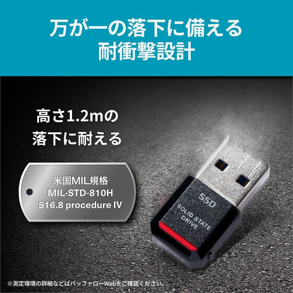 バッファロー SSD 外付け 500GB 極小 コンパクト ポータブル PS5 / PS4 対応 (メーカー動作確認済) USB3.2 Gen2 読込速度 600MB/s ブラック エコパッケージ SSD-PST500U3BA/N