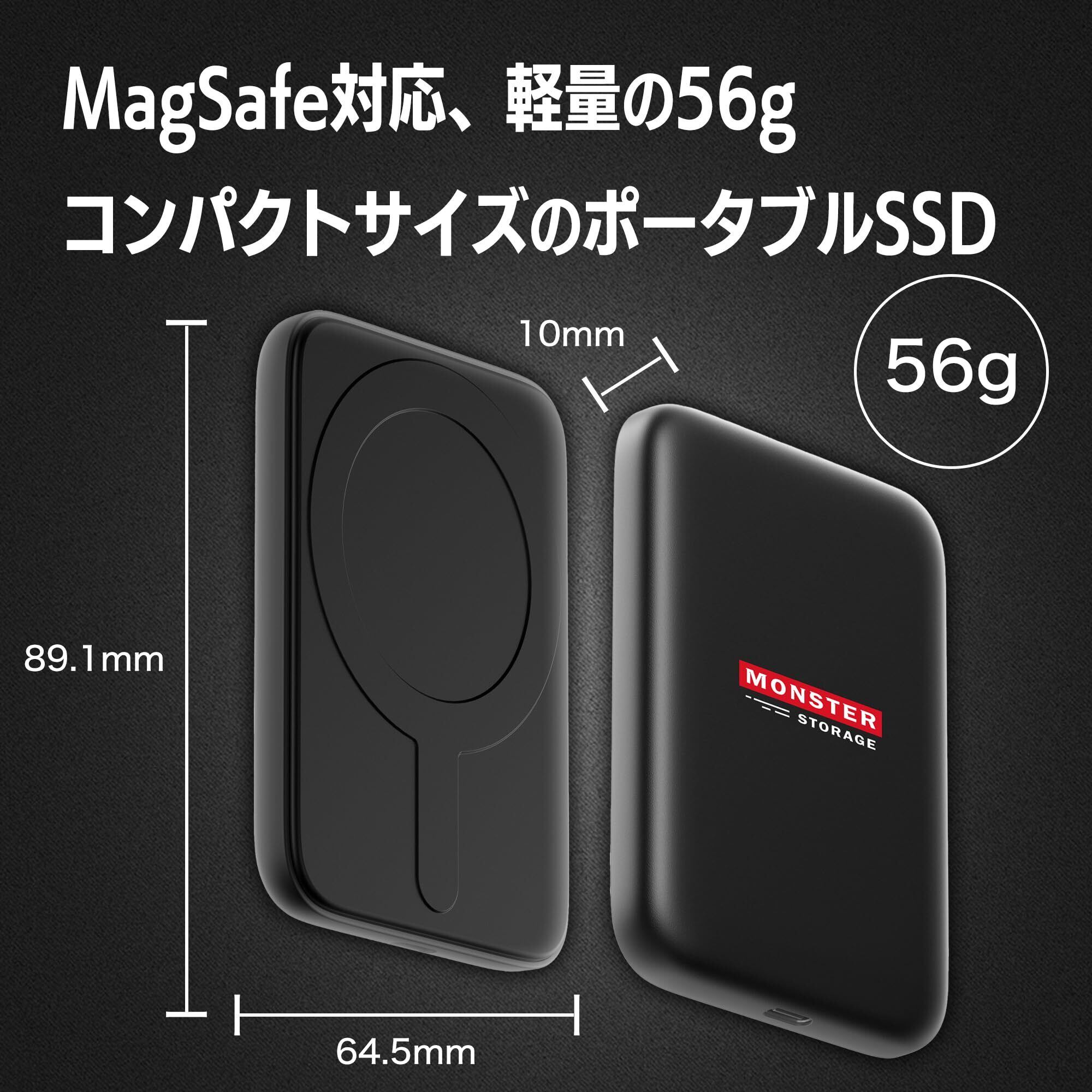 Monster Storage MagSafe SSD 外付け 1TB USB3.2 Gen2 Type‐C 最大読出速度2,000MB/秒 マグネット式 ポータブルSSD iPhone15 16ProMax Windows MacOS ChromeOS PS5 メーカー動作確認済み