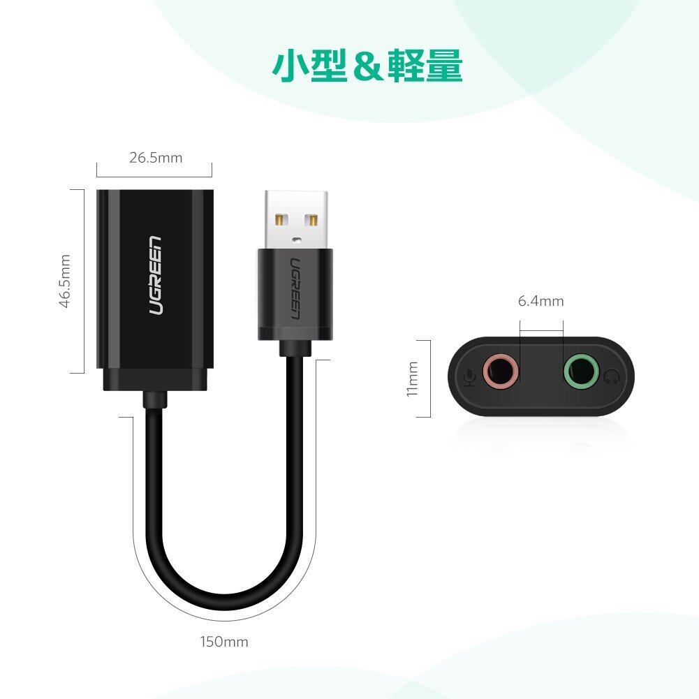 UGREEN USB オーディオ 変換アダプタ 外付け サウンドカード USB 3.5mm ミニ ジャック ヘッドホン・マイク端子 PS5 PS4,MacBook,Mac Mini,iMac,Windows PCなどに最適 ブラック