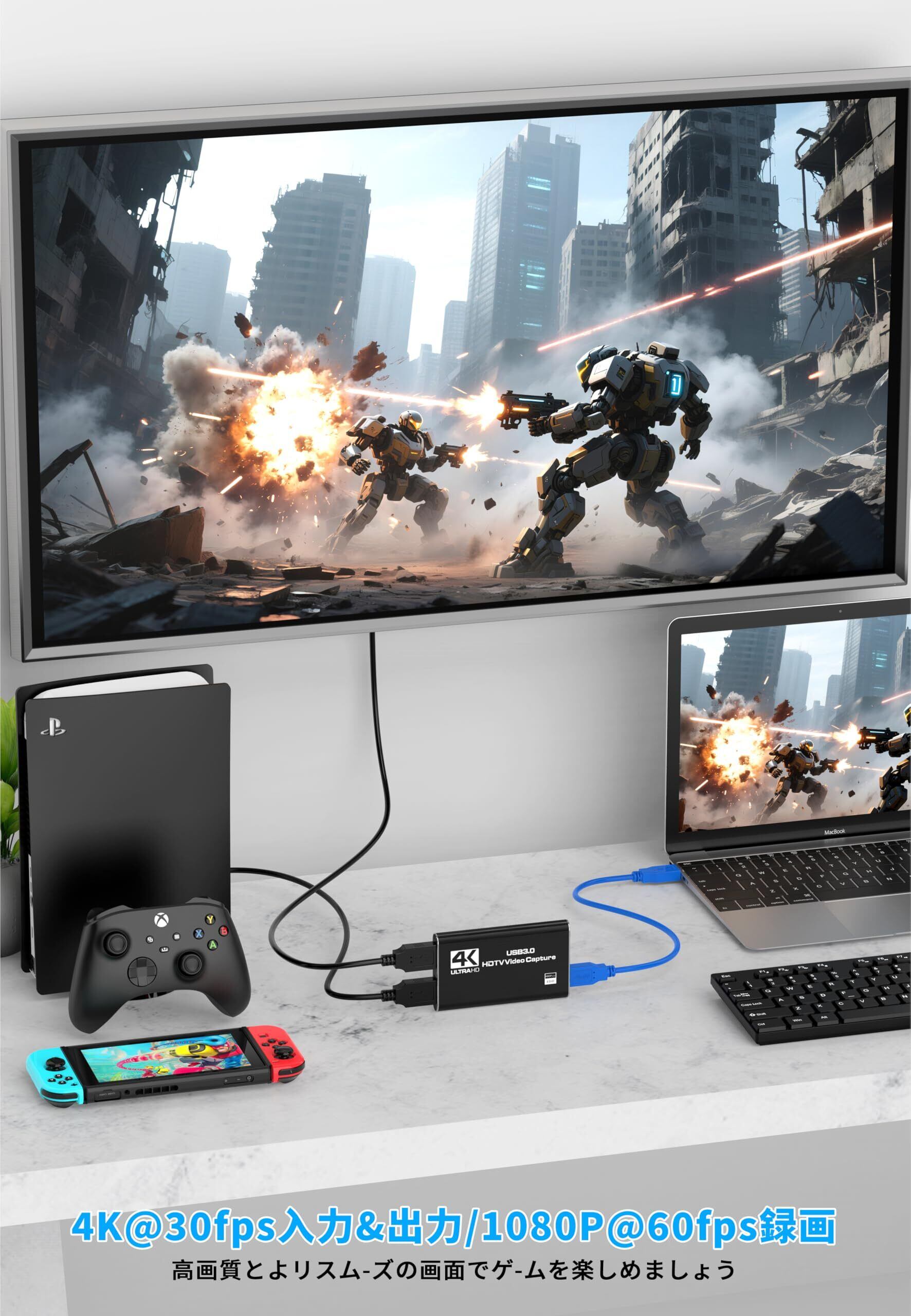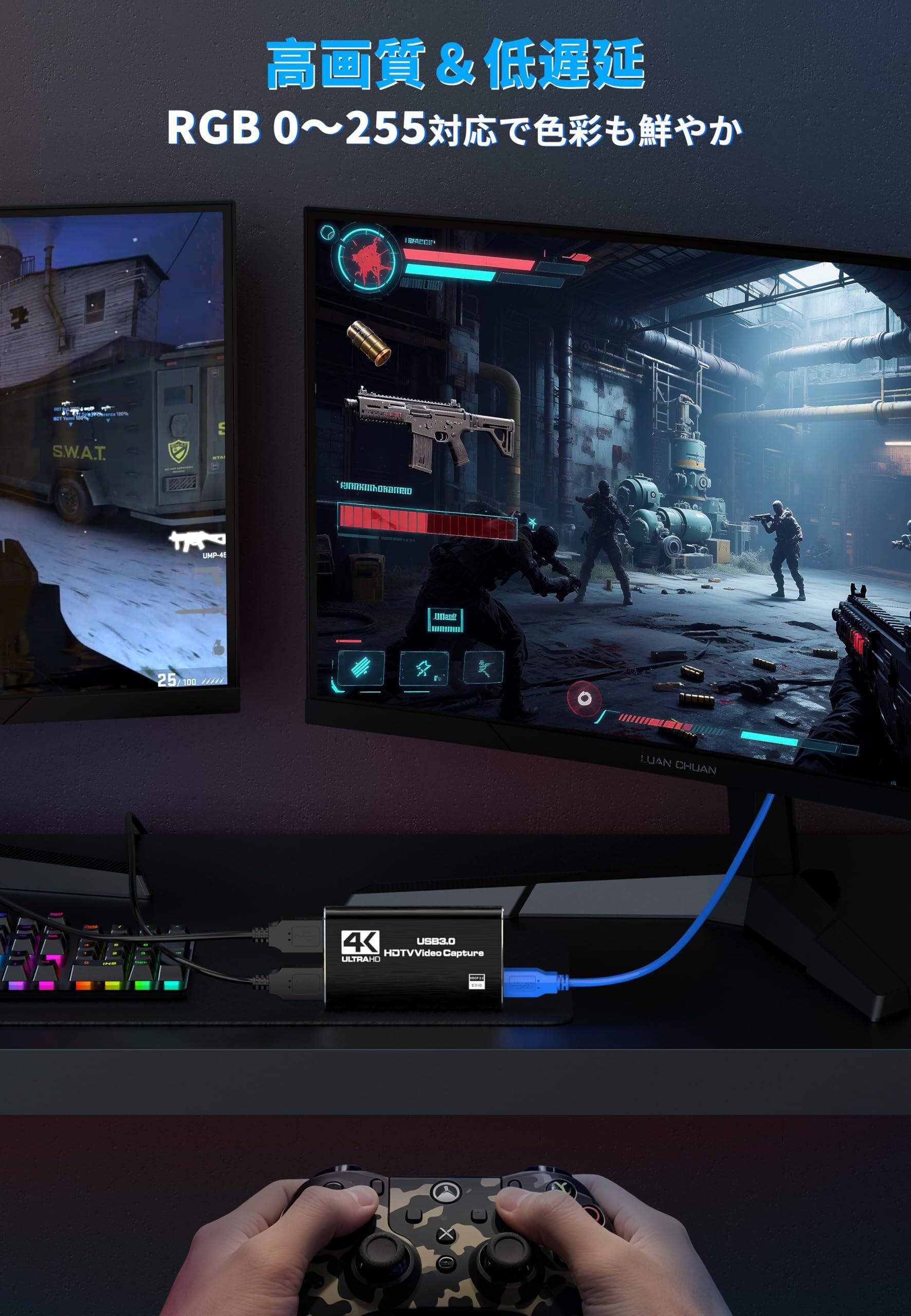 【4Kの高画質キャプチャー】 高精細な4K解像度で、ゲームや動画の細部まで鮮明に収録可能です。HDMI入力映像を4Kでキャプチャしながら、同時に出力可能。ライブ配信中でもディスプレイで映像を確認できる。