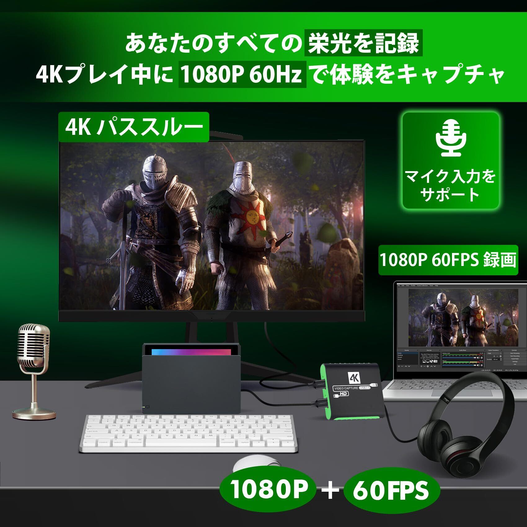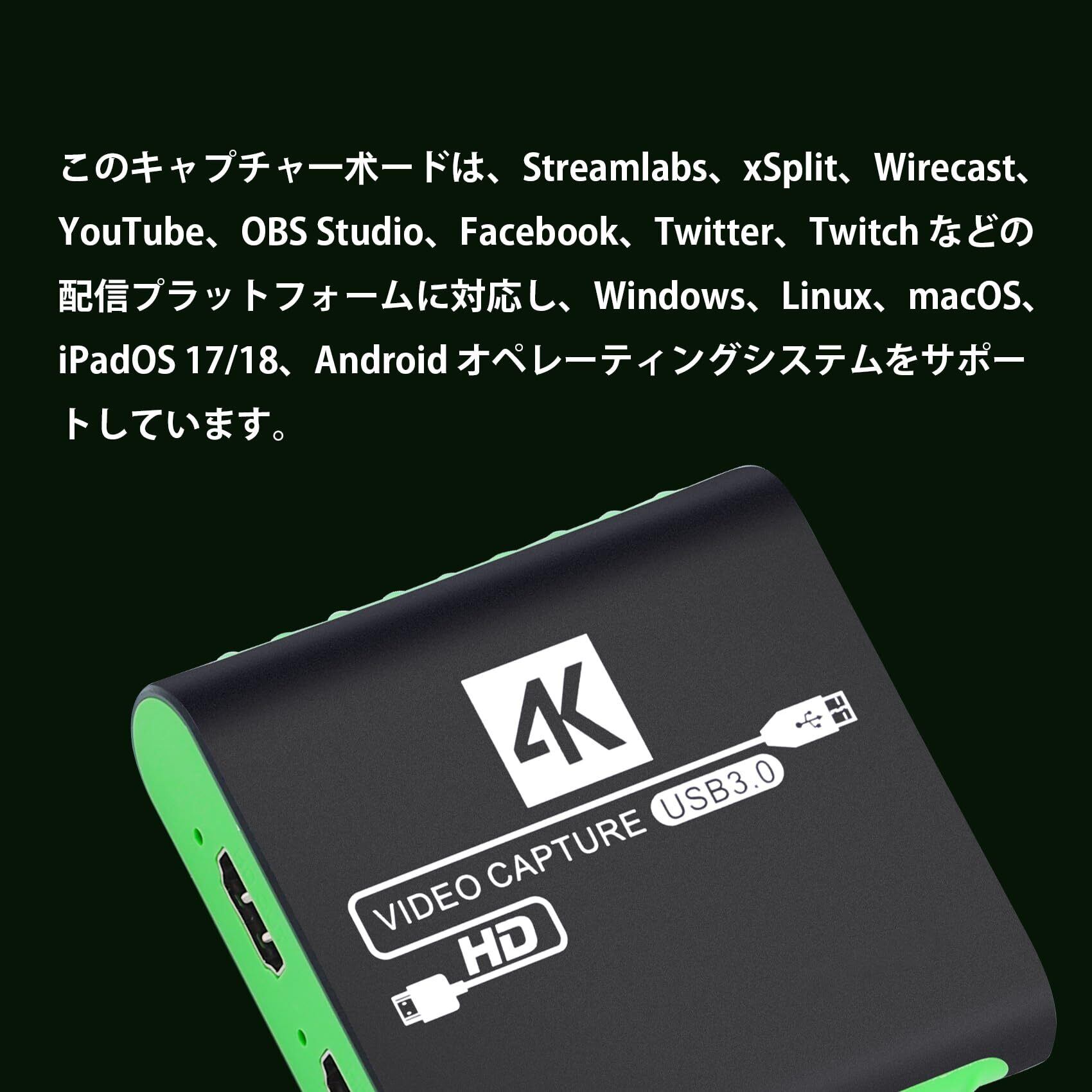 ビデオゲームキャプチャーボード HDMI 4K パススルー対応 Switch対応 PS5 対応 1080P 60FPS キャプチャー USB 3.0 Type-C 低遅延 PS4/Xbox/Wii U/PC/ウェブカメラ/スマートフォン対応 実況 会議 ライブ配信 録画 Windows 7/8/10/11 Mac Linux Android iPad OBS YouTube Twitch対応