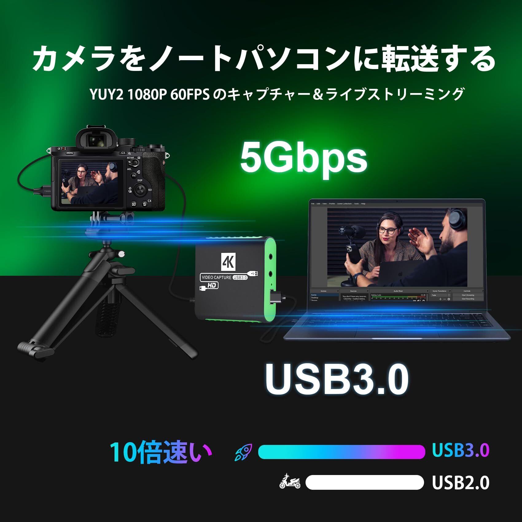 【USB 3.0高速伝送】キャプチャーボード switch対応は、USB 3.0インターフェースを採用し、最大5Gbpsの伝送速度をサポート。録画や配信中の遅延を防ぎ、クリアな画質を実現します。
