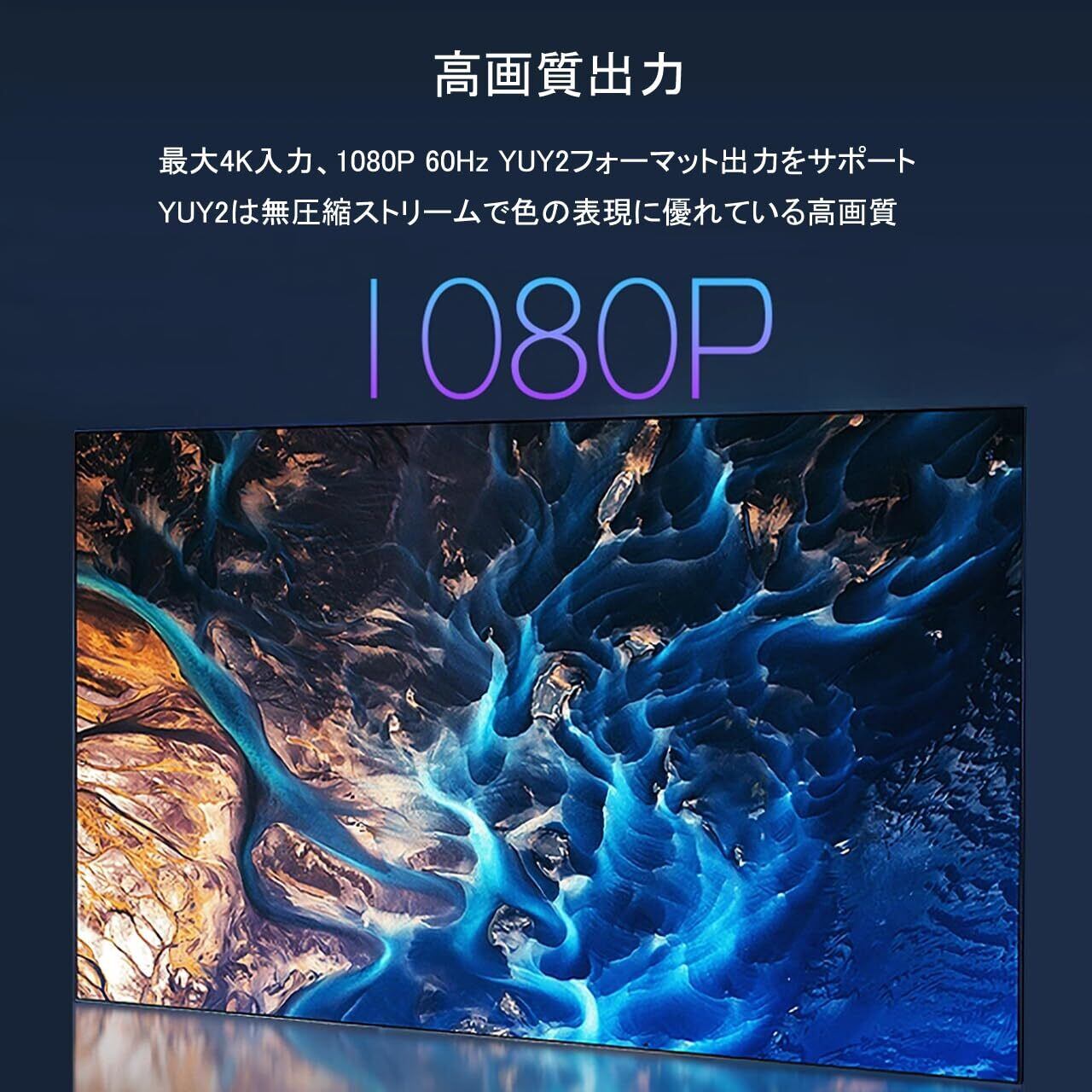 ❸【高画質4K 1080P@60Hz】ビデオキャプチャのため設計された新型高性能チップを搭載、小型で高画質ビデオを処理できることを実現。最大4K入力、1080P 60Hz YUY2フォーマット出力をサポート。YUY2は無圧縮ストリームで色の表現に優れている高画質映像フォーマットです。