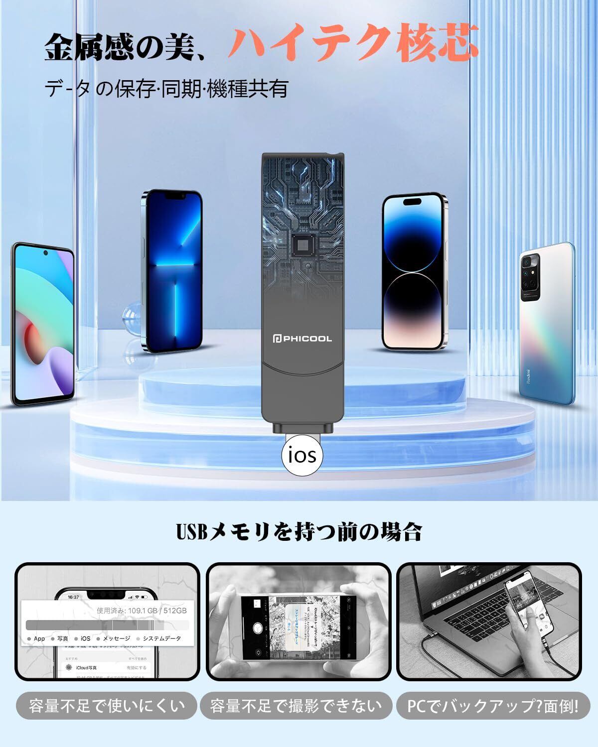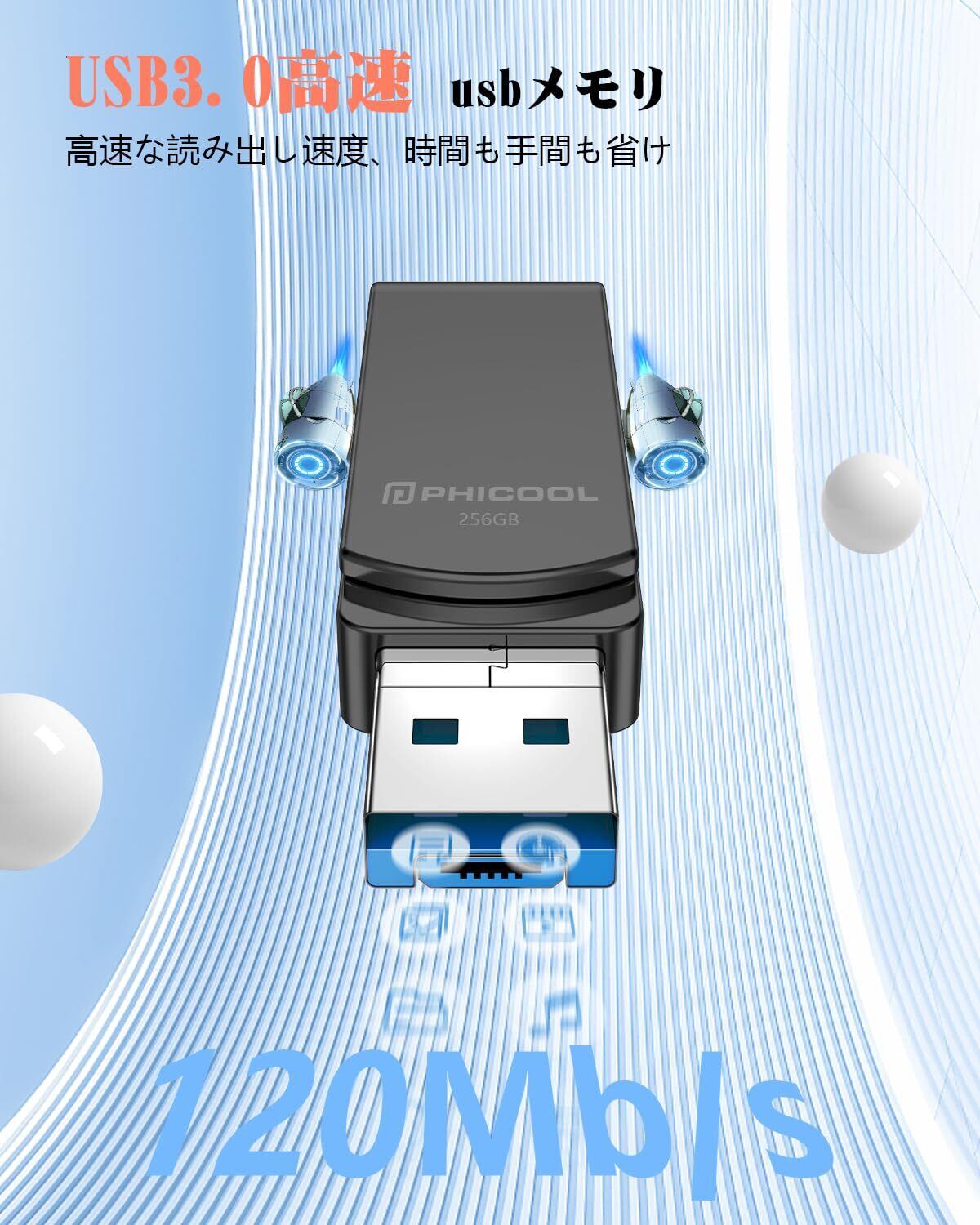 【プロ級容量管理】スマホ容量不足解消、この写真usbメモリはPhone256GBで高画質写真57,00枚・4K動画20時間分を保存可能。Cloudの月額2,130円(2TBプラン)と比較して5年分のコストを1回で節約。保存した写真データはUSBメモリ上で直接再生 保存可能なため、スマホ容量を圧迫しません。