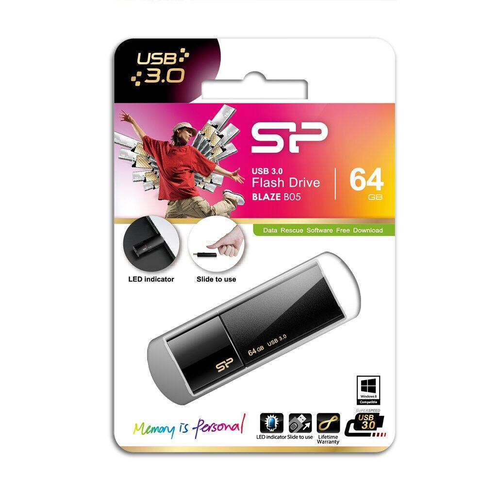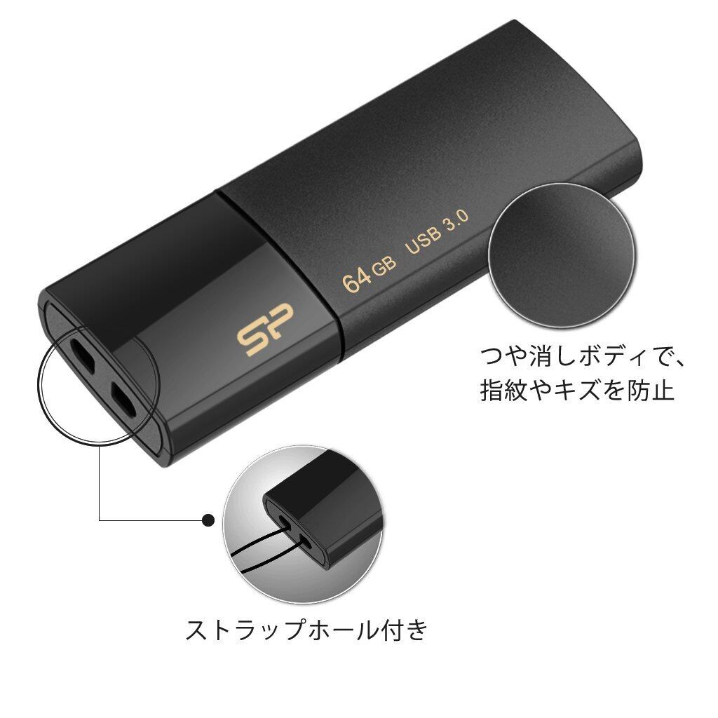 シリコンパワー USBメモリ 64GB USB3.0 スライド式 Blaze B05 ブラック SP064GBUF3B05V1K