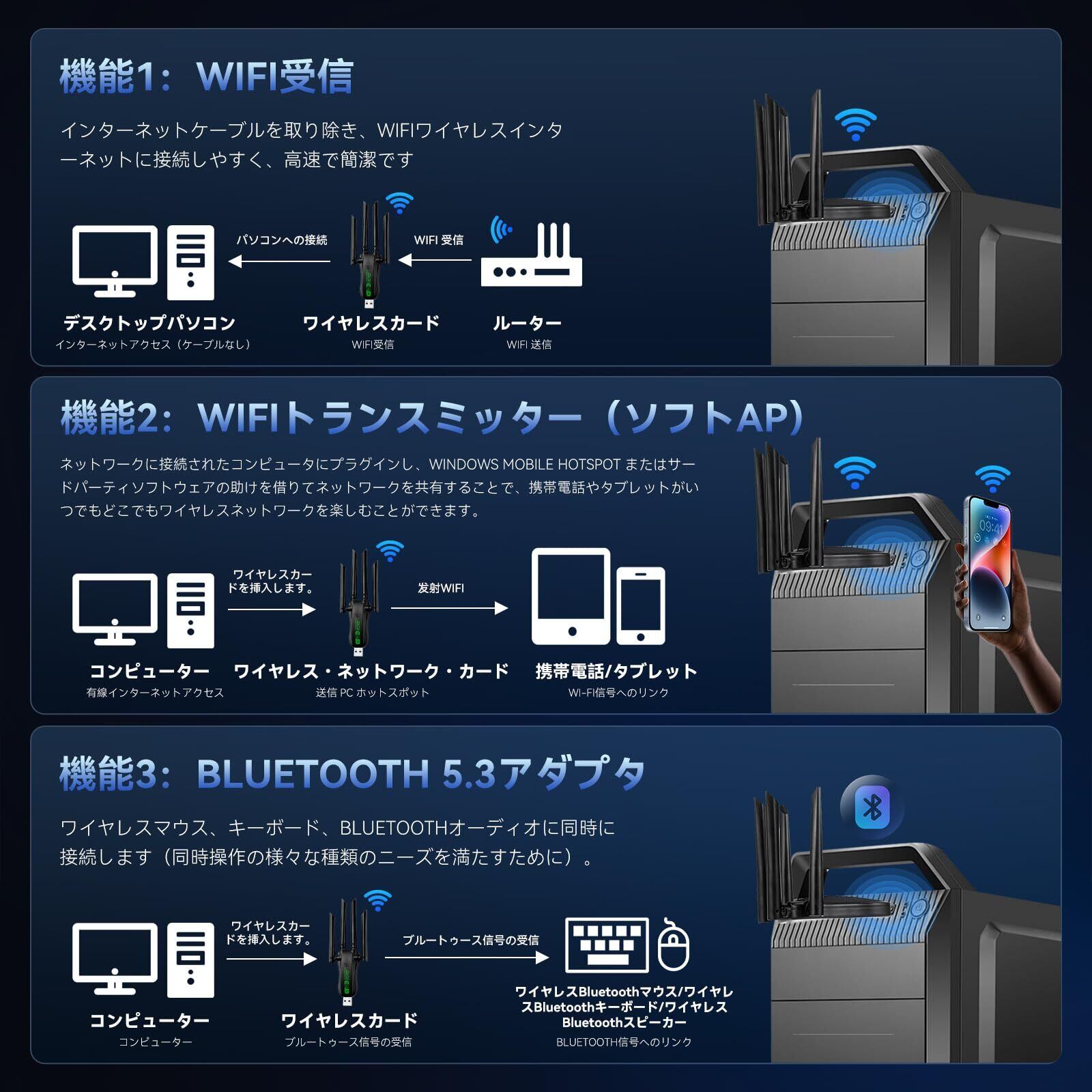 【1500Mbps WiFi無線LAN子機】 WiFi無線LAN子機AC1500(1200Mbps + 360mbps) +ブルートゥース5.4です Windows 11/10/8.1/8/7 2.4/5Gデュアルバンド対応802.11a/b/g/n/ac/ax無線規格です WiFi USBアダプターwi-fi子機無線lanアダプタは3 します