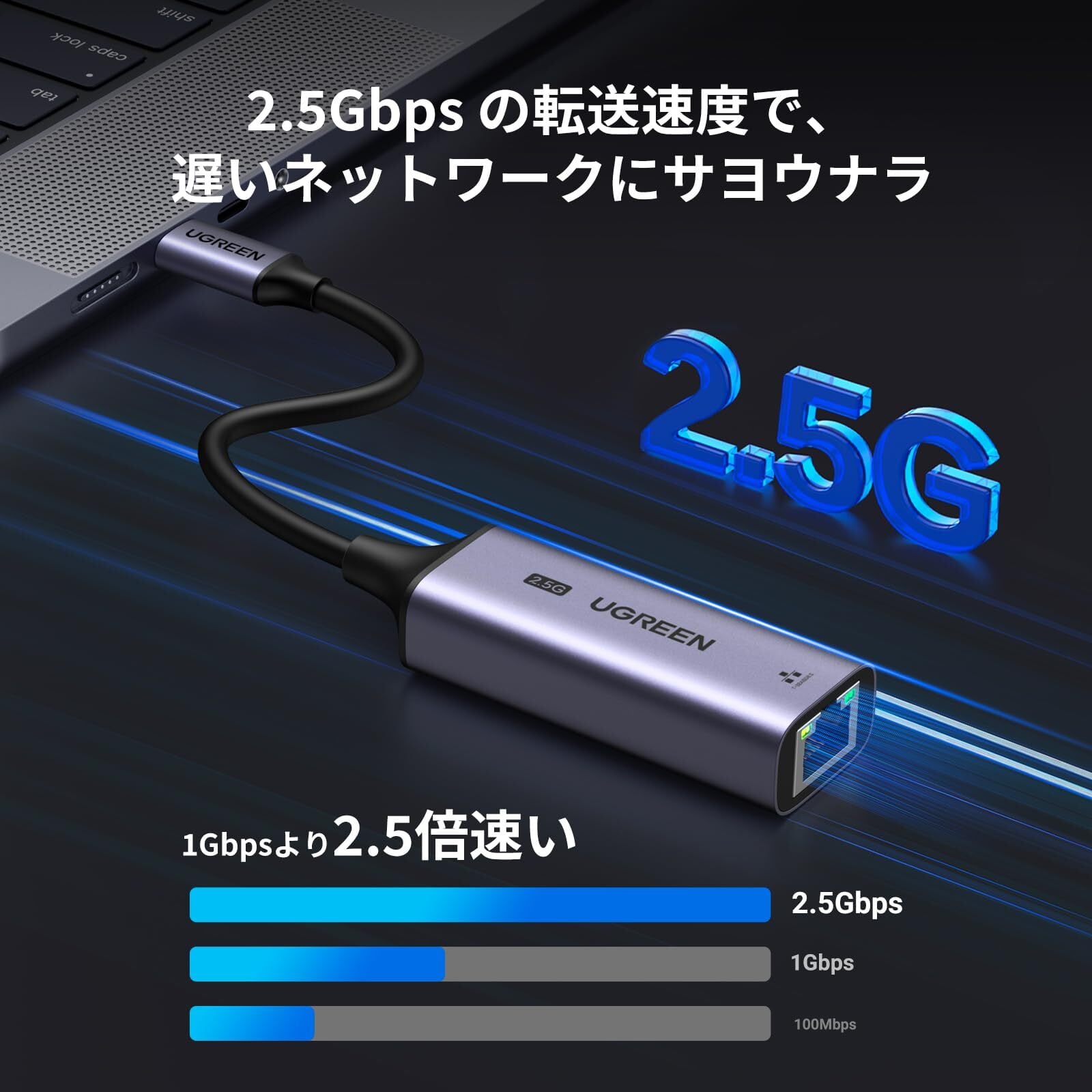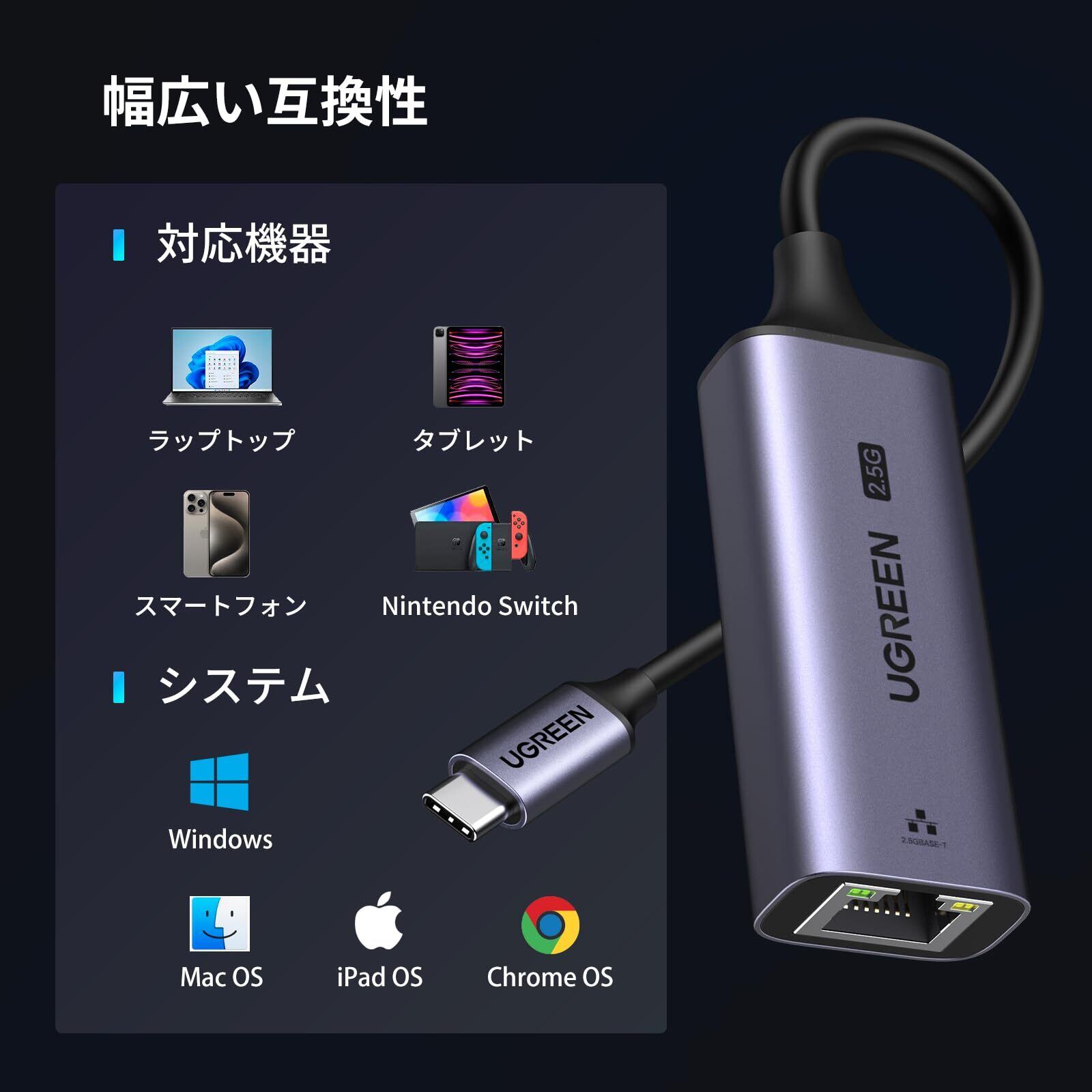 UGREEN 有線LANアダプター 2.5Gbps 超高速通信 USB Type C to RJ45 2500Mbps USB LAN変換アダプター イーサネットアダプター ギガビット LANケーブルiPhoneシリーズ/MacBook Pro/iPad Pro/XPS/Microsoft Surface Pro対応