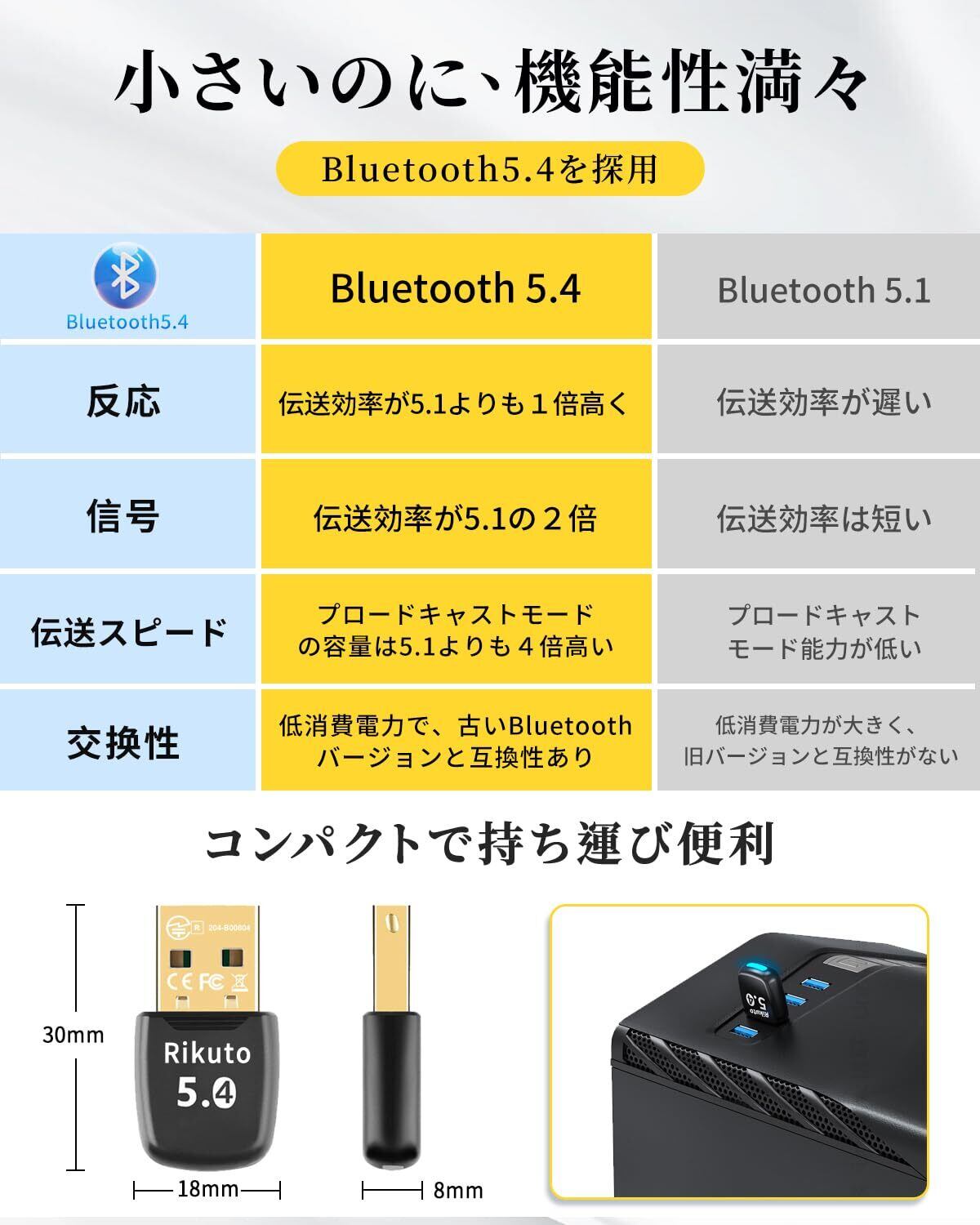 【業界トップクラスBluetooth5.4技術&ドライバー不要】Rikuto Bluetooth アダプタ 5.45.4 Bluetooth USB Rikuto bluetooth レシーバー ブルートゥース アダプタ 超低遅延 小型 簡単な操作 最大通信距離20-30m EDR/LE対応(省電力) aptX対応 Win7/8.1/10/11対応 Mac非対応 、挿し込で即利用