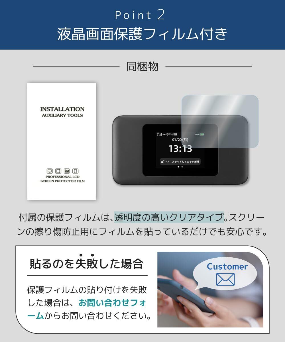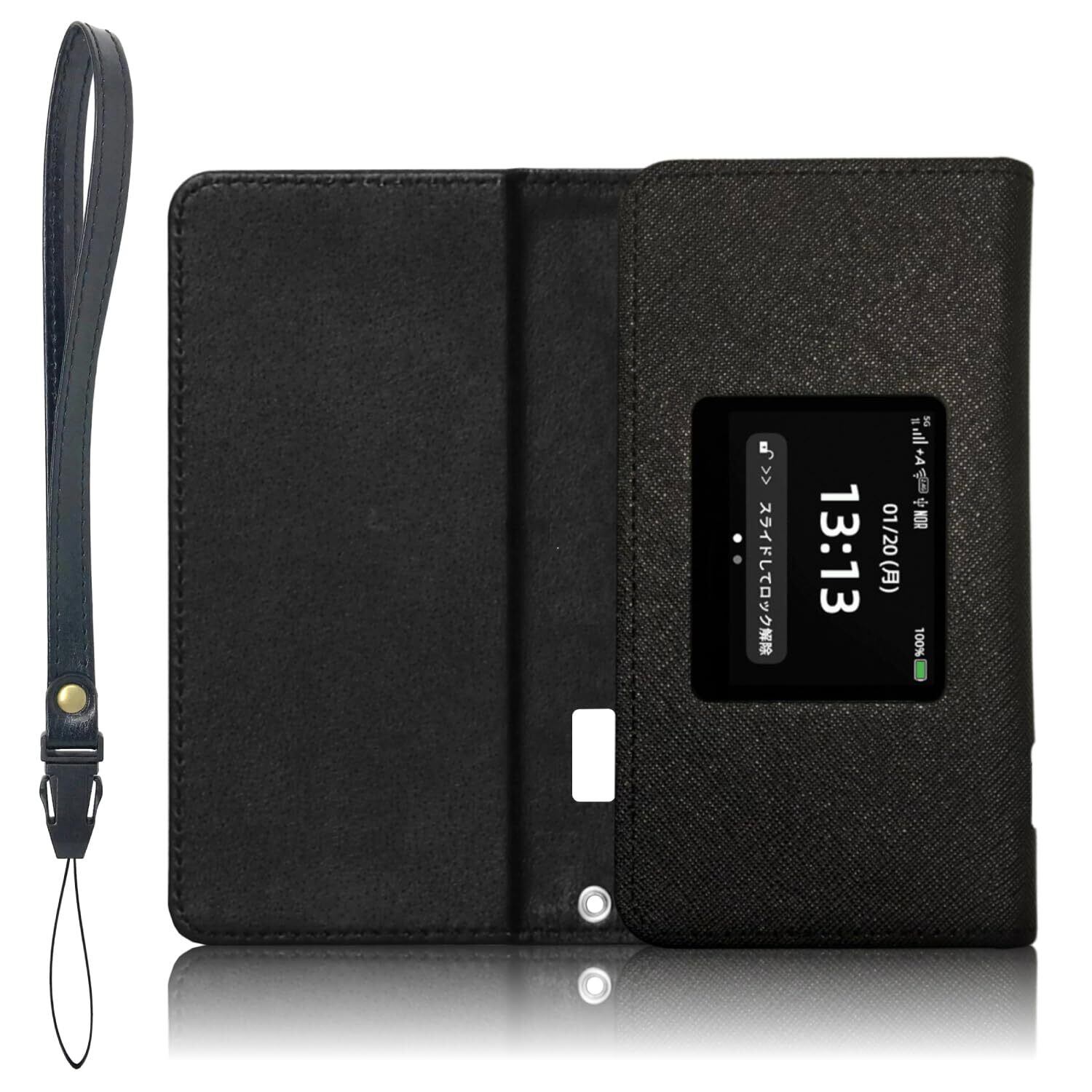 LOE(ロエ) Speed Wi-Fi 5G 01 専用 モバイルルーターケース スタンド機能付き PUレザーカバー 保護フィルム・ストラップ付属 ブラック【5G 01専用/X11非対応】
