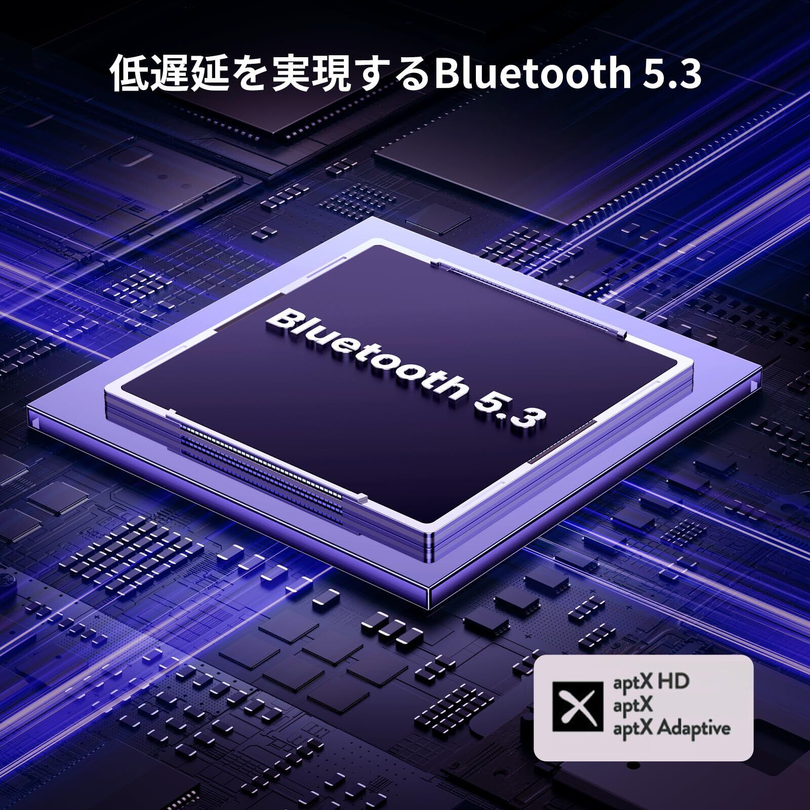 オーディオデコードをサポートします: キースイッチAPTX/APTXアダプティブ低遅延/APTXアダプティブ高品質/APTX HD/SBCをサポートします。対応するLEDライトが動作状態を表示します。低遅延aptX LLをサポートするQualcommチップセットを搭載し、安定したエネルギー効率の高い接続で高品質の24ビットダイナミックオーディオを伝送します。注意:使用するヘッドホンも同じ規格に対応している必要があります