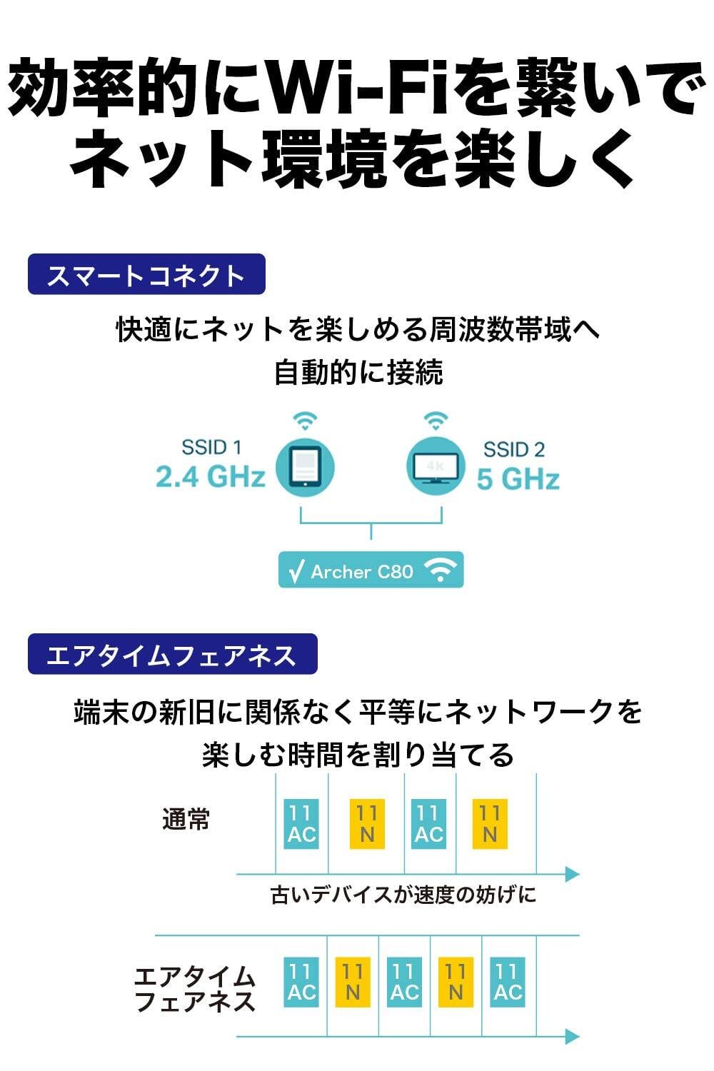 TP-Link WiFi ルーター 無線ルーター 1300+600Mbps EasyMesh MU-MIMO ビームフォーミング対応 メーカー3年 WiFi5 AC1900 Archer C80/A
