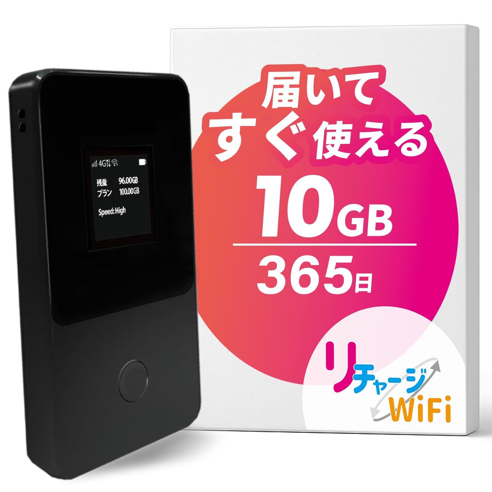 【リチャージWiFi】ロングバッテリー 日本10ギガ 最大1年間使える ギガ付ポケットWiFi 小型 契約返却無し 月額費用無し 簡単ギガチャージ 国内海外利用可能 電源ONで即時使える モバイルルーター【T8BK-日本10GB/365日間】