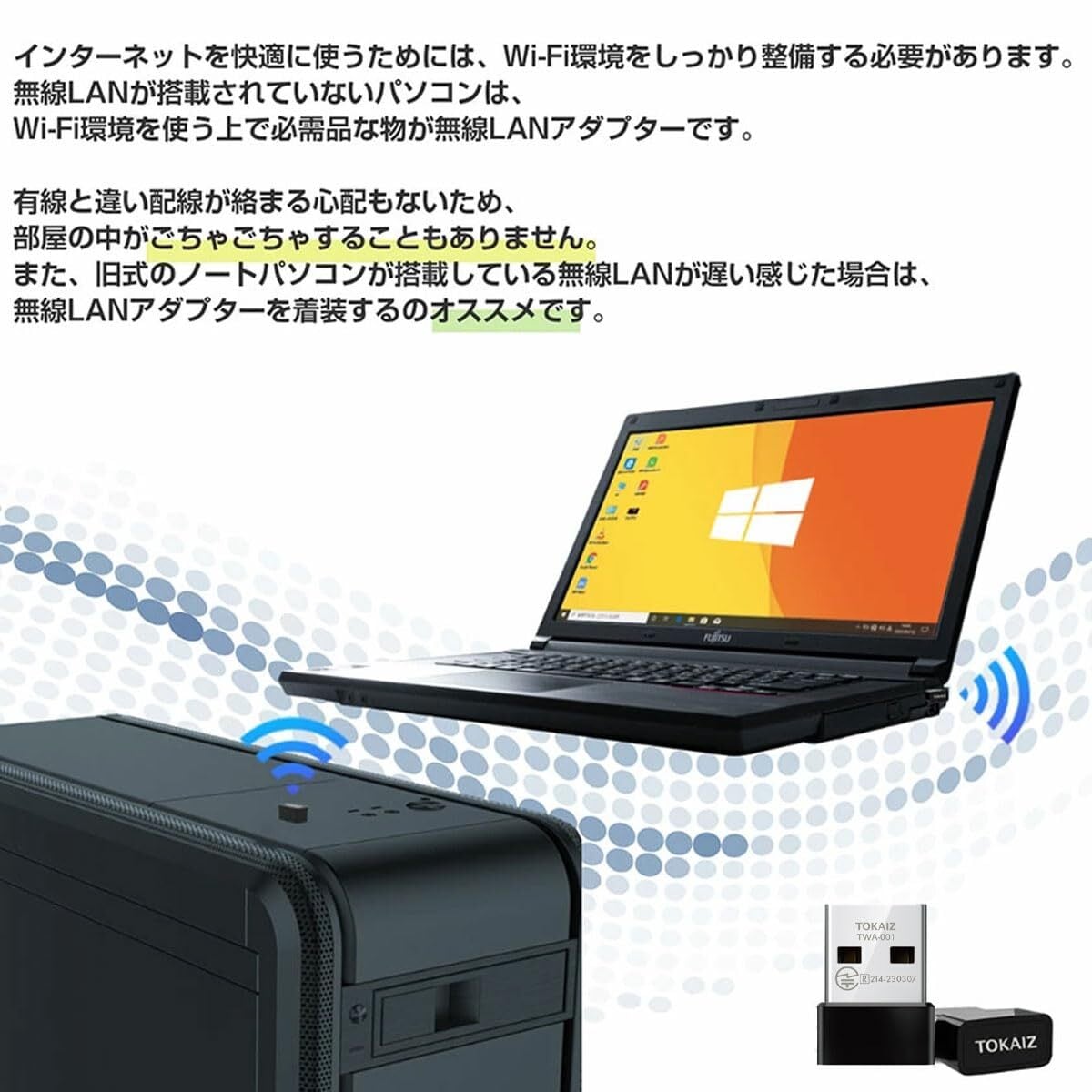旧式のノートパソコンが搭載している無線LANが遅い感じた場合は、 無線LANアダプターを着装するのオススメです。