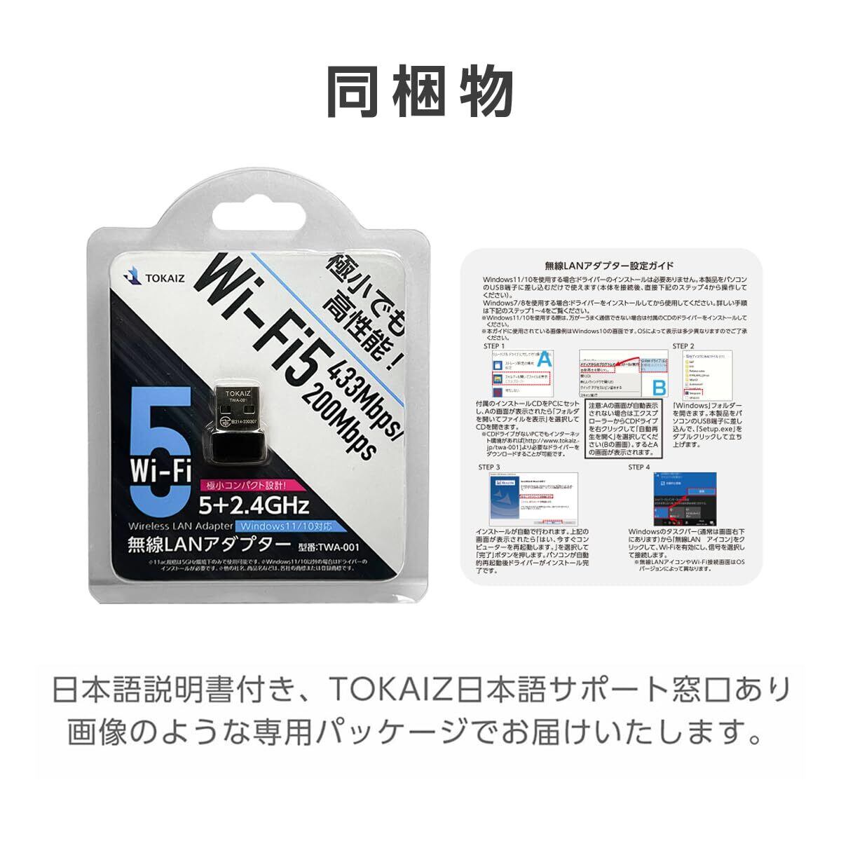 TOKAIZ 無線LAN WiFi 子機 Wi-Fi5 AC対応 無線LANアダプター AC600 2.4GHz 5GHz 433Mbps + 200Mbps 超小型 usb無線アダプター Windows/Mac OS 対応