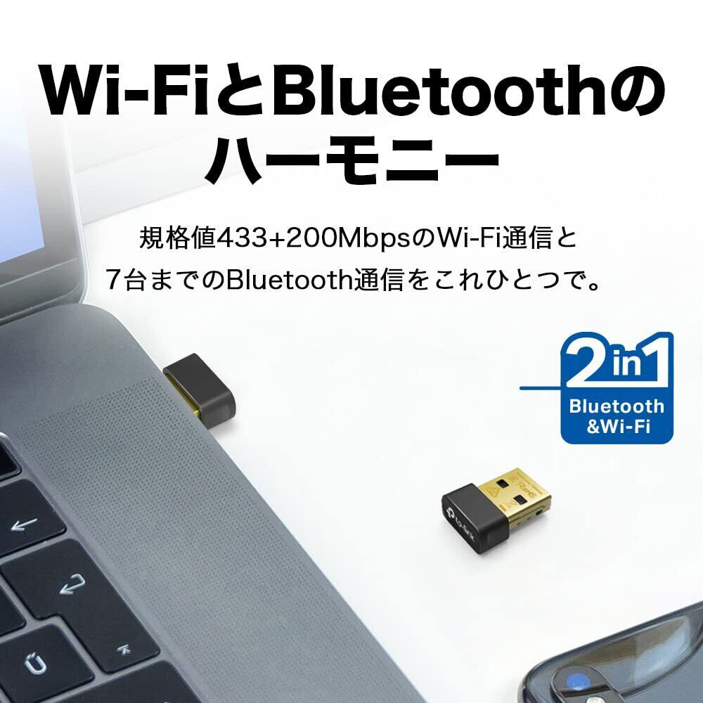 TP-Link ブルートゥース + wifi USBアダプター Bluetooth 4.2 WiFi子機 AC600 433 + 200Mbps 超小型 かんたん設定 WPA3 対応 Archer T2UB Nano/A